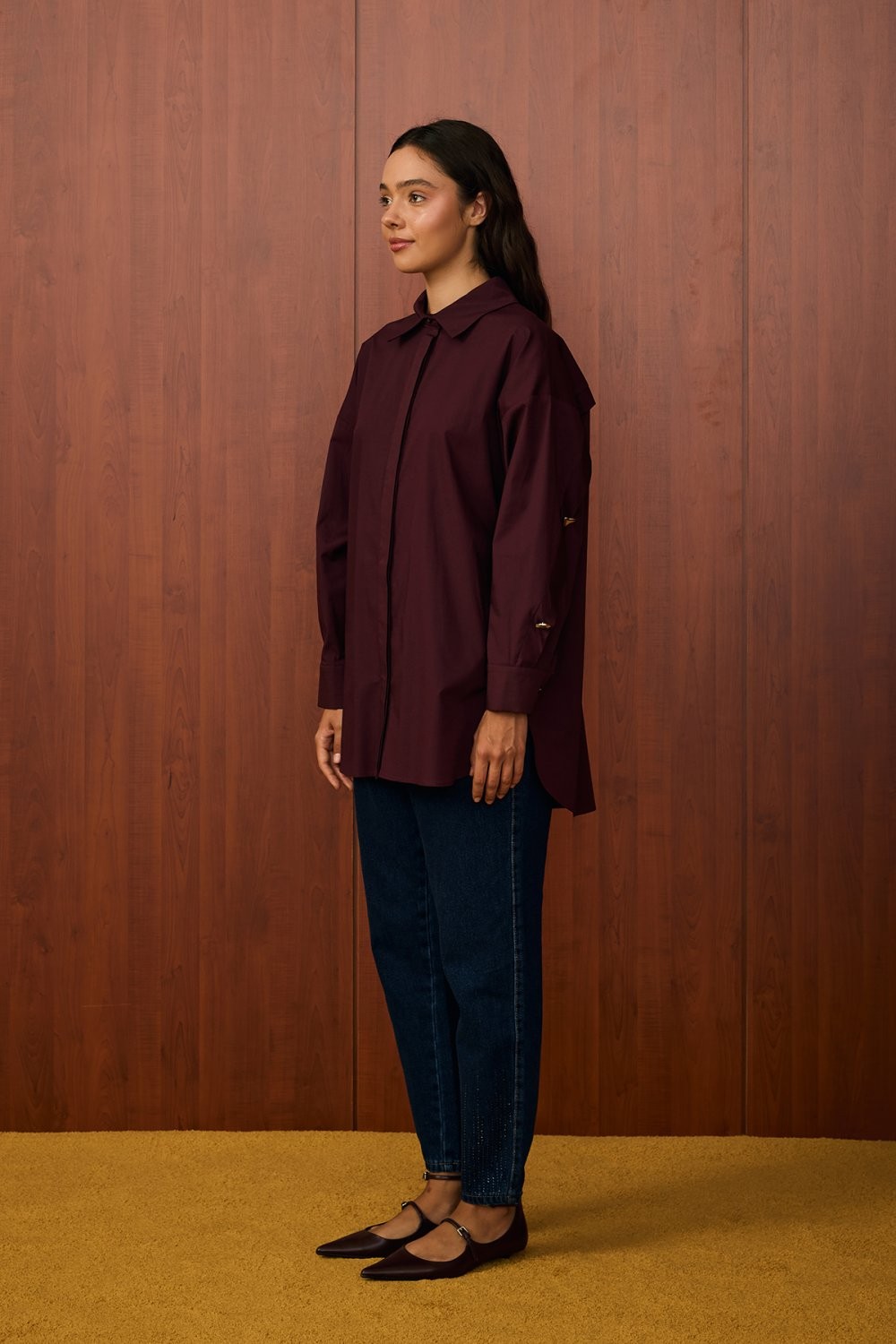 Model Detayı: Düz kesim, kuşaklı, uzun kollu gömlek tasarımı. Geniş yaka detayı ve bele oturtulabilen kuşak ile şık ve modern bir görünüm sunar.