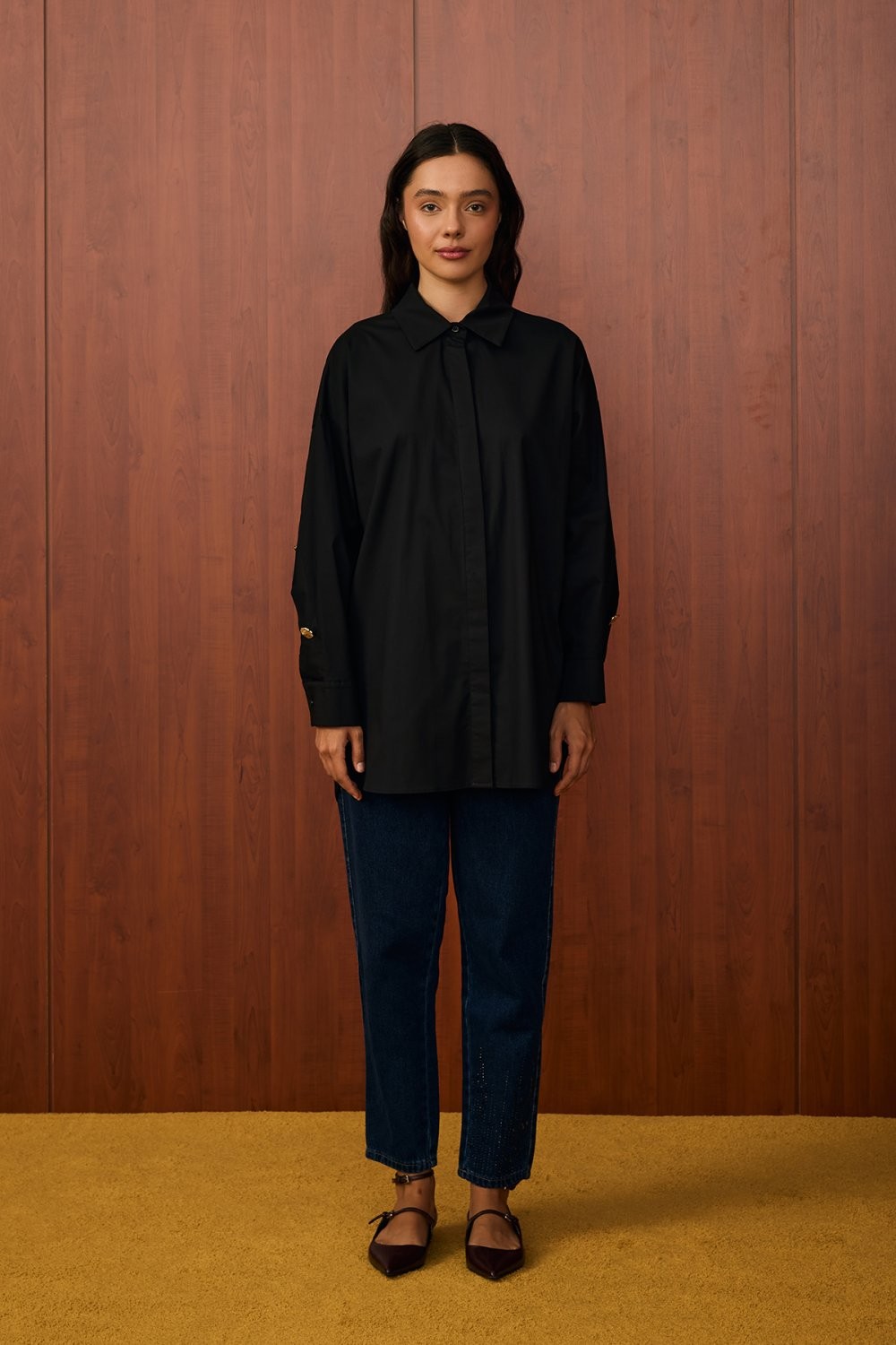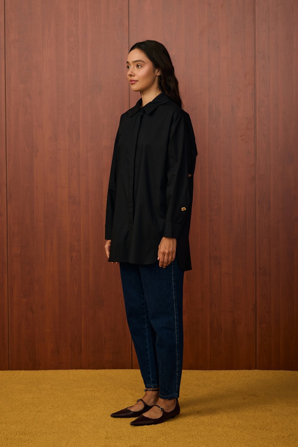 Model Detayı: Düz kesim, kuşaklı, uzun kollu gömlek tasarımı. Geniş yaka detayı ve bele oturtulabilen kuşak ile şık ve modern bir görünüm sunar.