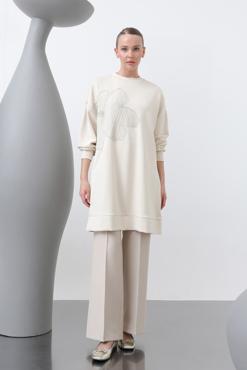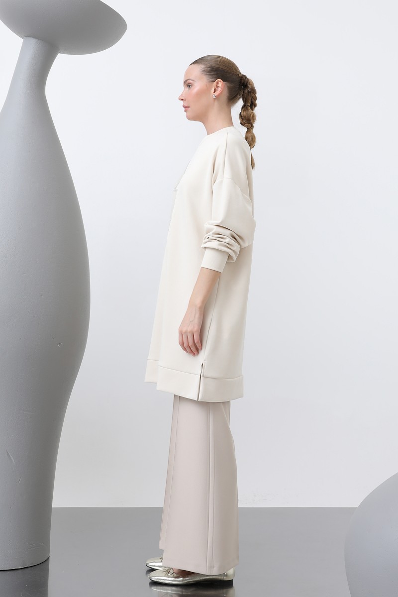 Yanı Fermuar Detaylı zarif bir dokunuş sunan bu sweat, rahat kesimiyle tüm gün boyunca konfor sağlar. Modern tasarımı ve şık yazısı ile günlük