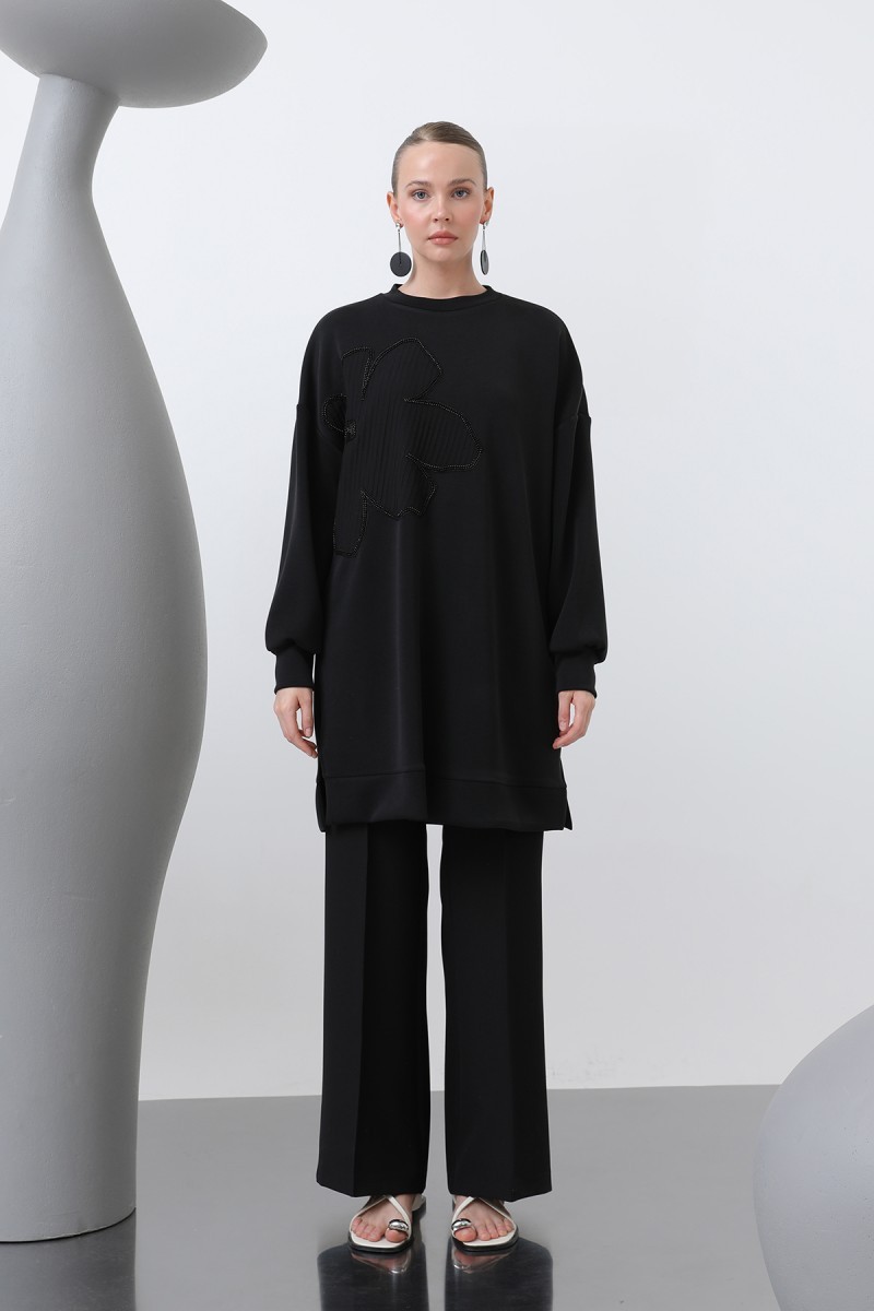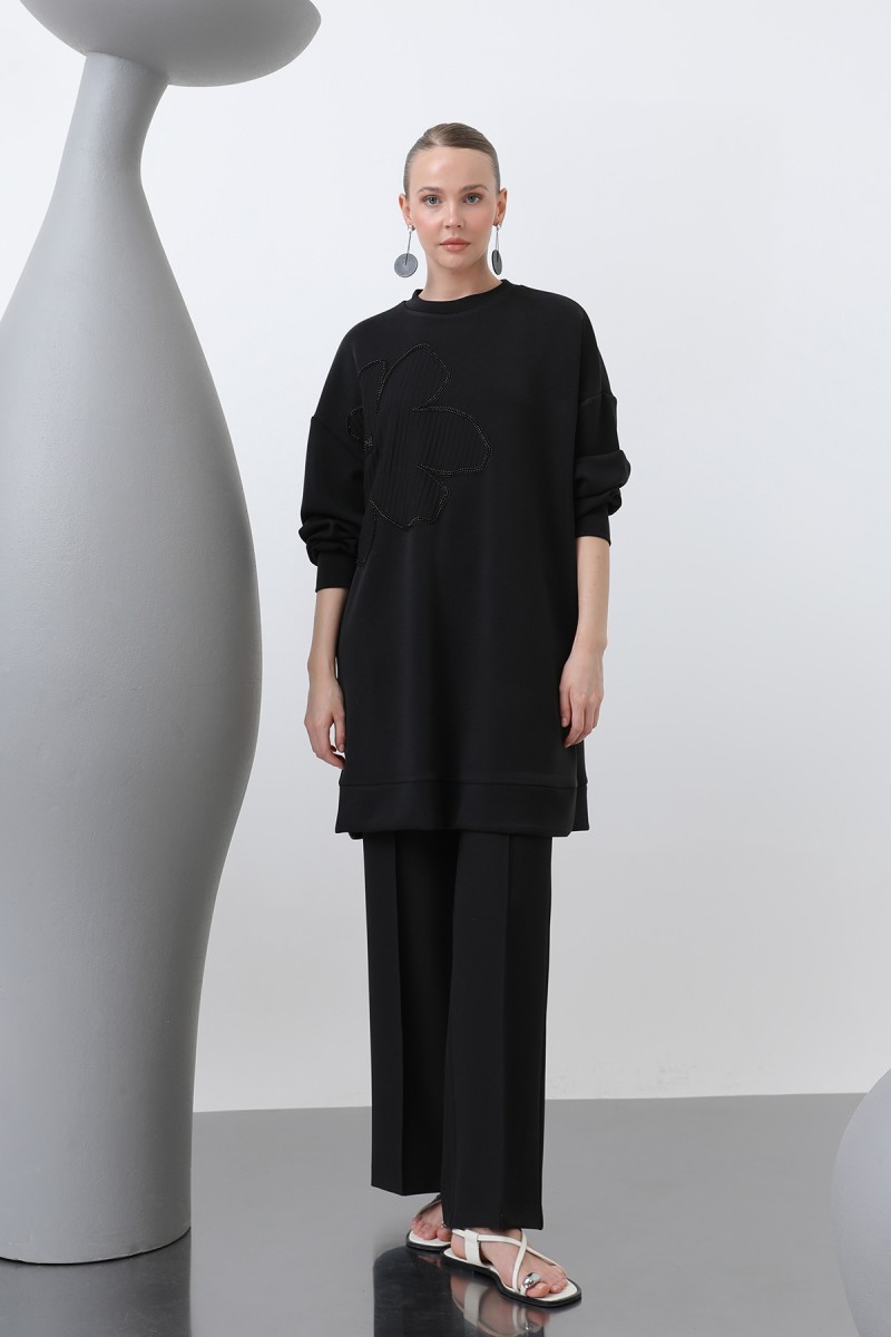 Yanı Fermuar Detaylı zarif bir dokunuş sunan bu sweat, rahat kesimiyle tüm gün boyunca konfor sağlar. Modern tasarımı ve şık yazısı ile günlük