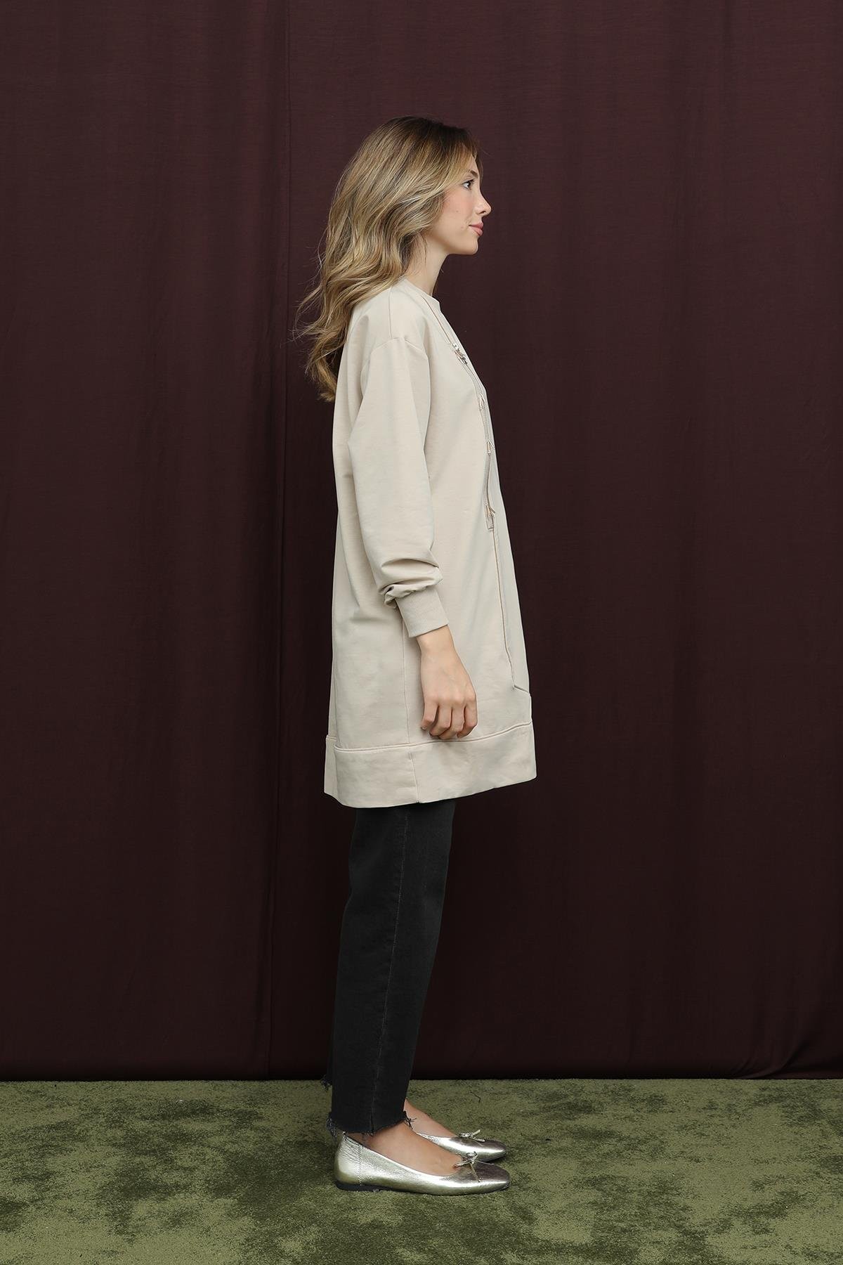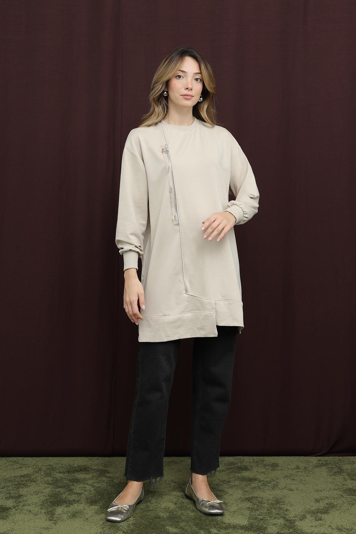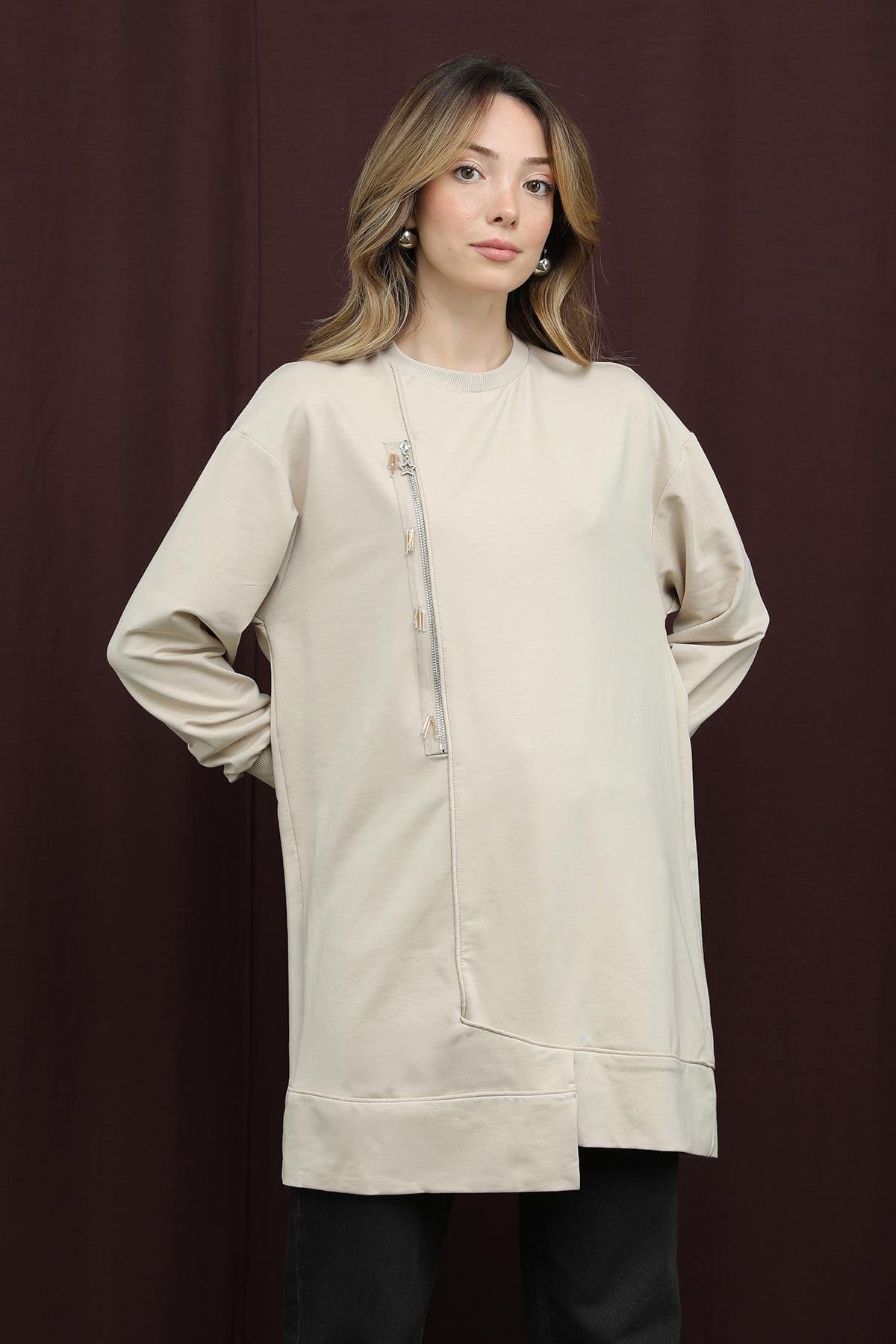 Kadın 10735 İşlemeli ve Fermuarlı Tunik