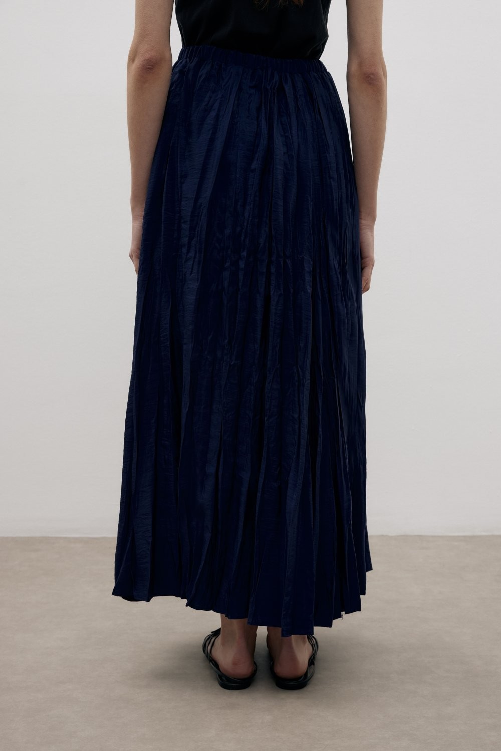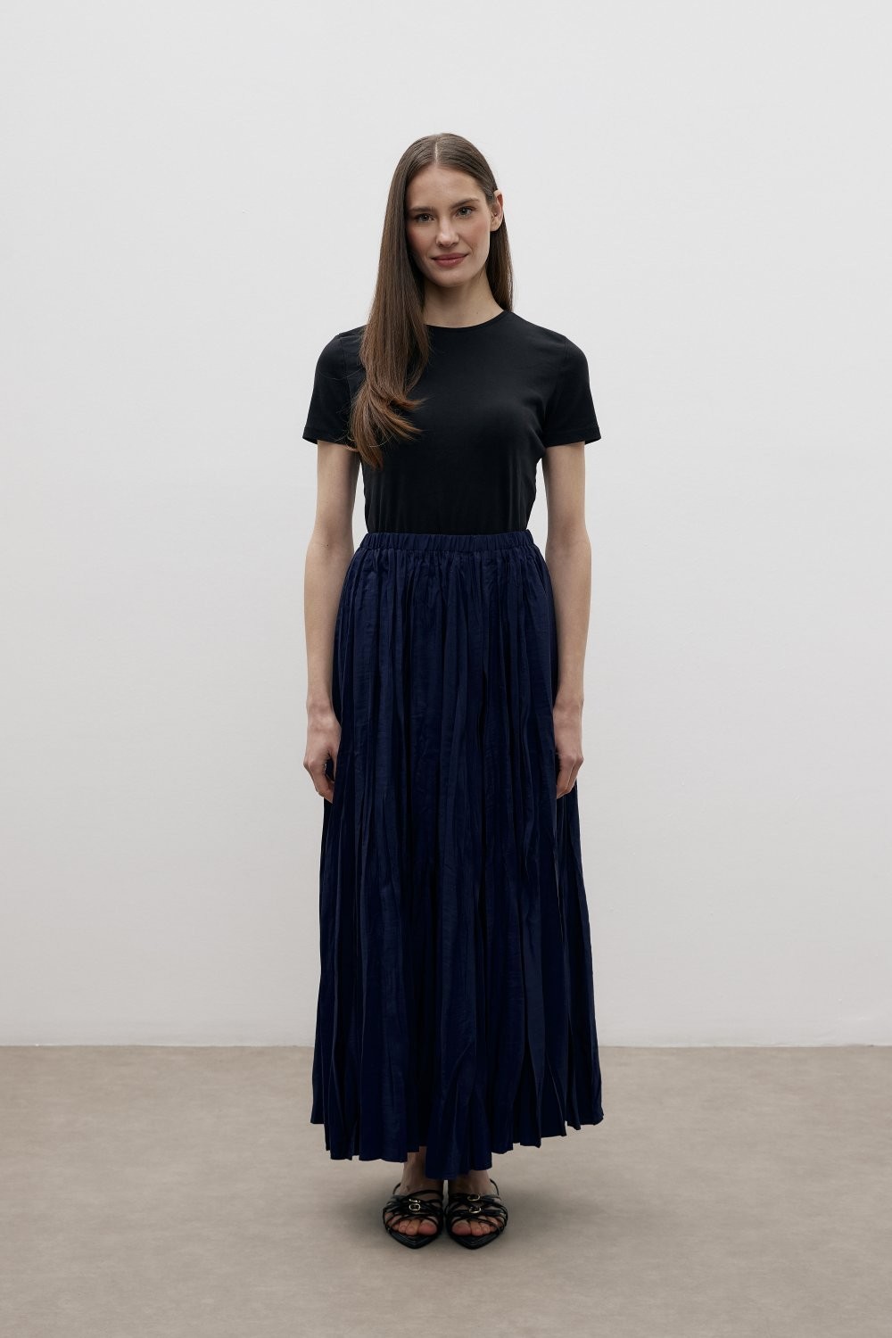 Hafif ve dökümlü yapısıyla Kadın Krinkıl Kumaş Pileli Uzun Etek, modern ve zamansız bir tarz sunuyor. Krinkıl kumaşı, kendiliğinden kırışık dokusuyla ekstra ütü gerektirmez ve her an şık görünüm sağlar. Lastikli beli sayesinde rahat bir kullanım sunarken, pileli tasarımı ile hareketli ve zarif bir duruş yaratır. Günlük kullanımdan özel davetlere kadar her kombinle kolayca uyum sağlar.