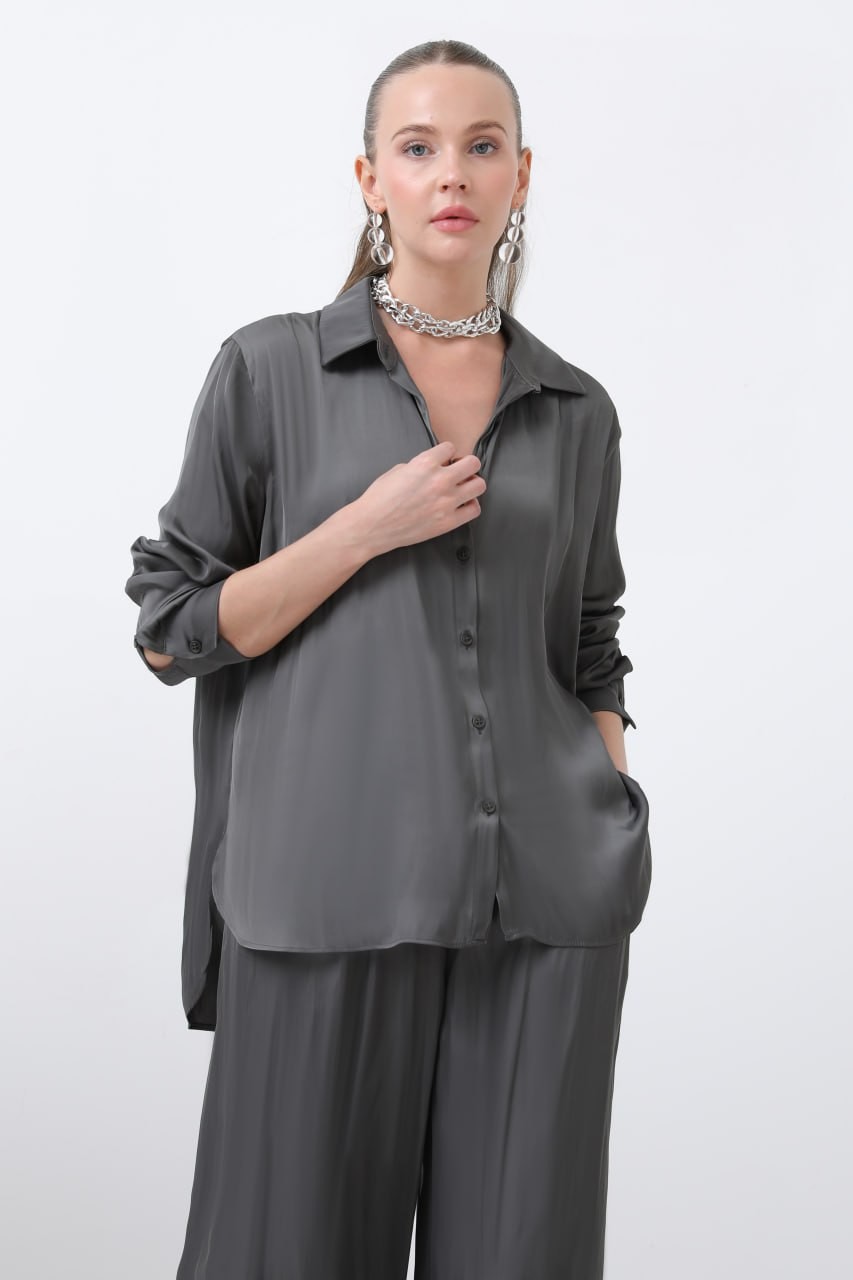 Açıklama : Parlak ve şık saten kumaşı ile zarif bir hava katan bu gömlek, her ortamda şıklığınızı ön plana çıkarır. Yumuşak ve rahat yapısı ile gün boyu rahatça giyilebilir. Hem ofis stilinizde hem de özel davetlerde rahatlıkla tercih edilebilecek bir parça.