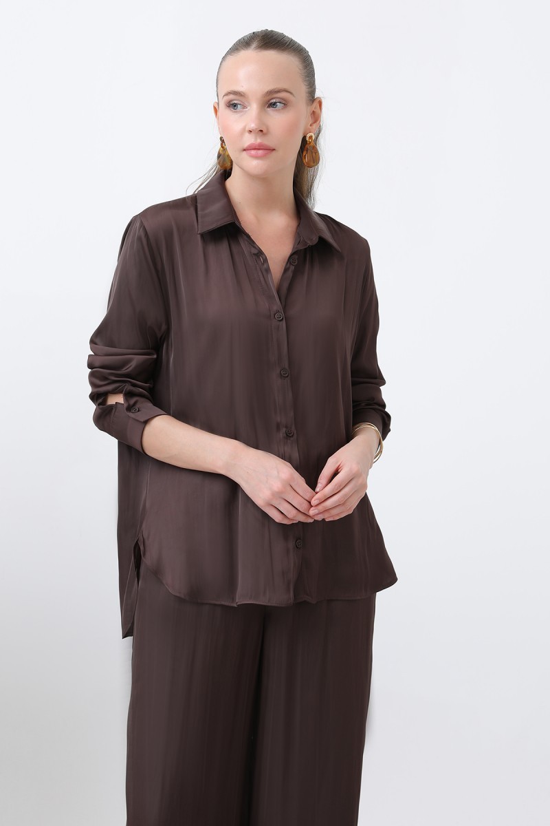 Açıklama : Parlak ve şık saten kumaşı ile zarif bir hava katan bu gömlek, her ortamda şıklığınızı ön plana çıkarır. Yumuşak ve rahat yapısı ile gün boyu rahatça giyilebilir. Hem ofis stilinizde hem de özel davetlerde rahatlıkla tercih edilebilecek bir parça.