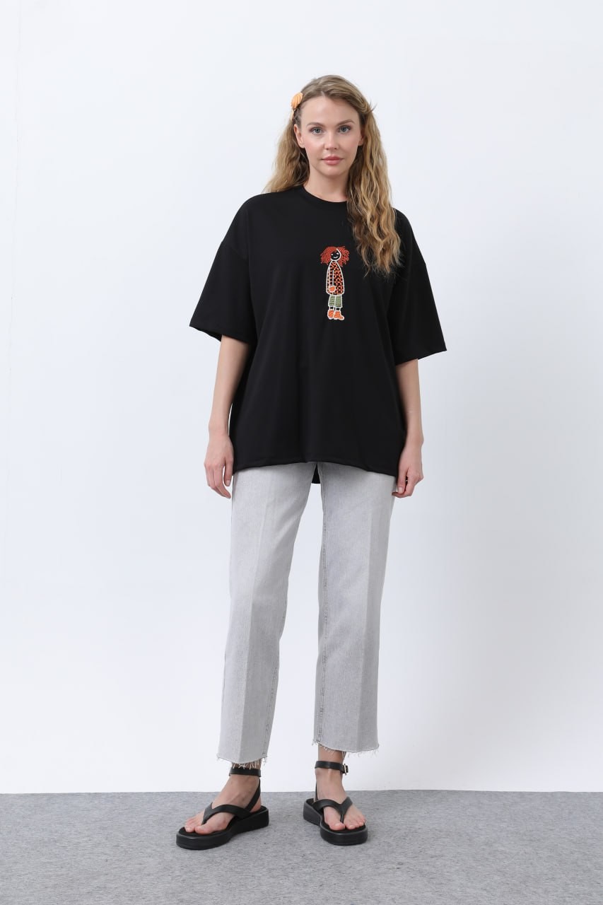 Zarif aplikeler ve detaylı işlemelerle modern bir şıklık sunan bu tunik, özgün tasarımıyla öne çıkar. Konforlu kesimi ve hafif dokusuyla günlük kombinlerde hem şık hem de rahat bir kullanım sağlar.