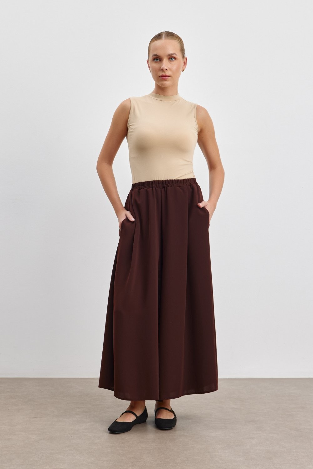 Ürün Özeti: Bu şık ve rahat geniş paça pantolon, kaliteli double krep kumaşı ile üretilmiştir. Modern kesimi ve cep detayları ile hem günlük kullanım hem de özel günler için idealdir. 92 cm boyu ve zarif tasarımı sayesinde her türlü kombinle uyum sağlar. Yumuşak ve akıcı kumaşı ile gün boyu rahatlık sunar.