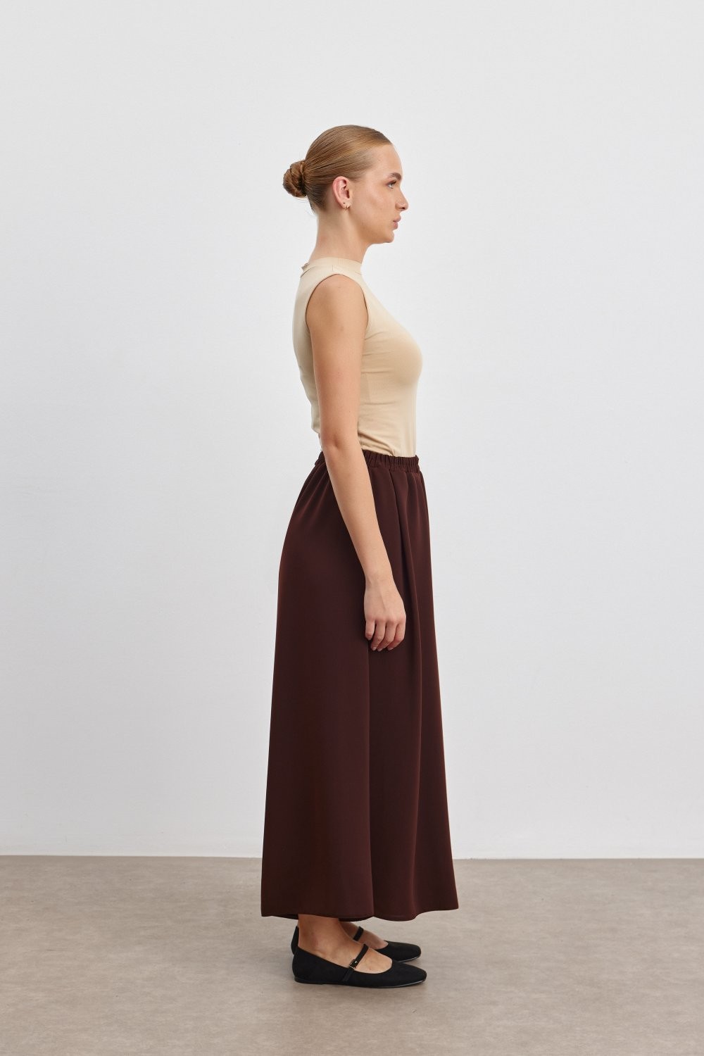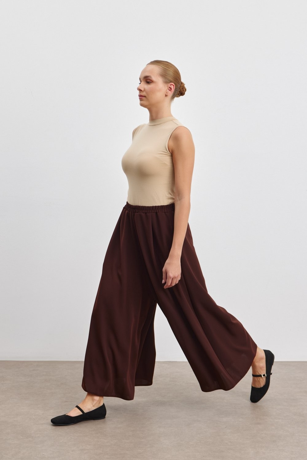Double Krep Kumaşlı Geniş Paça Pantolon - 92 cm Boy