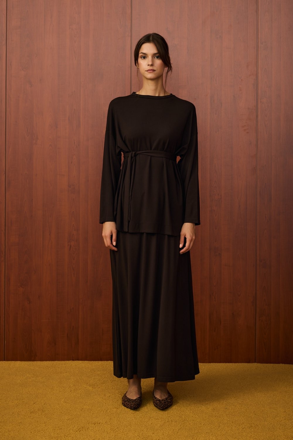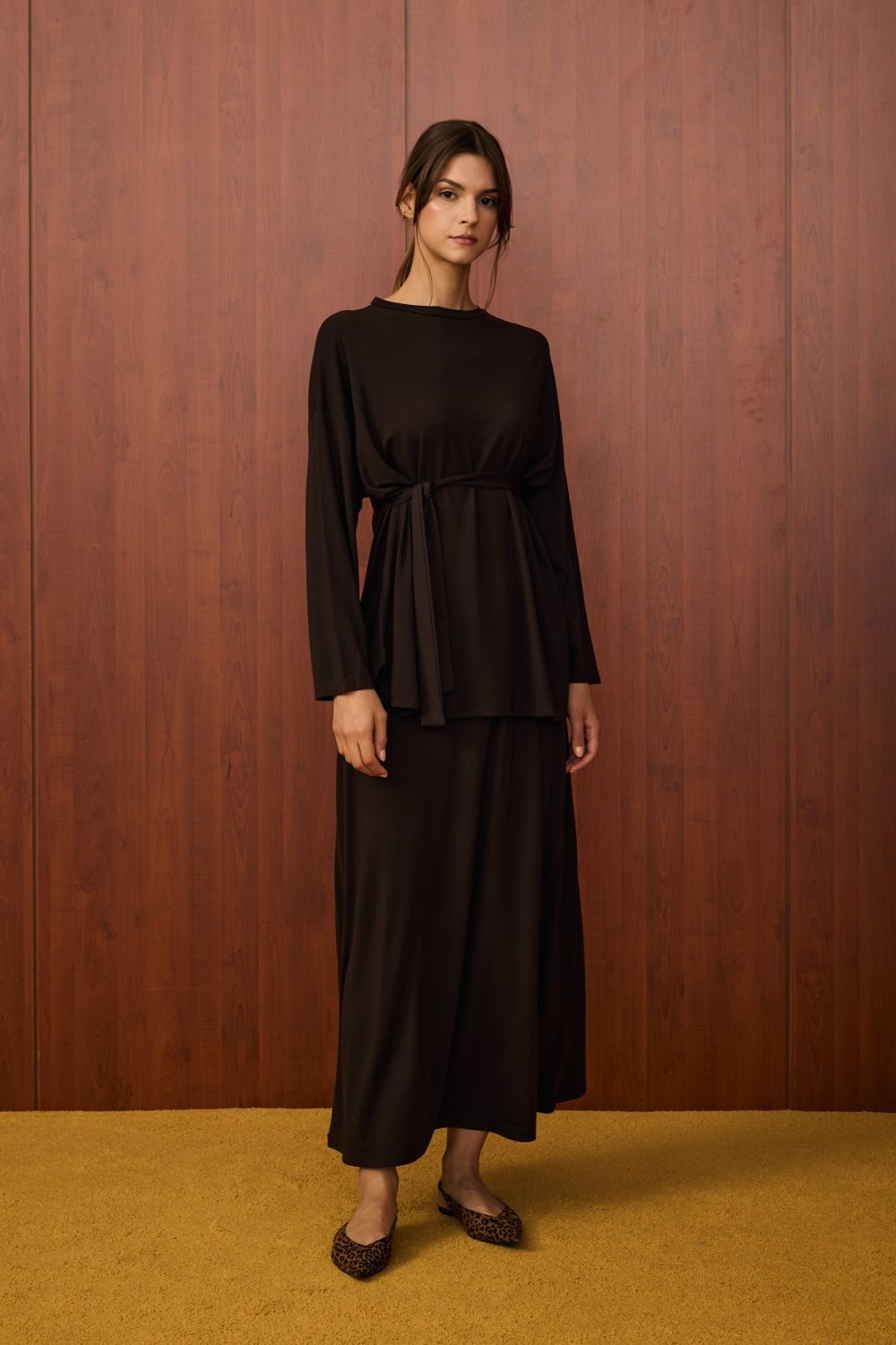 • Alt parça: Geniş paçalı, etek görünümlü pantolon