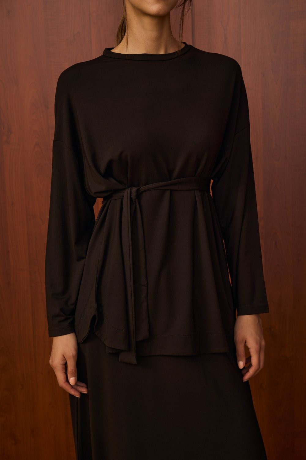 • Üst parça seyyar kuşaklıdır (kendi kumaşından kemerli)