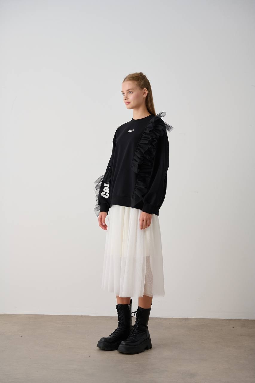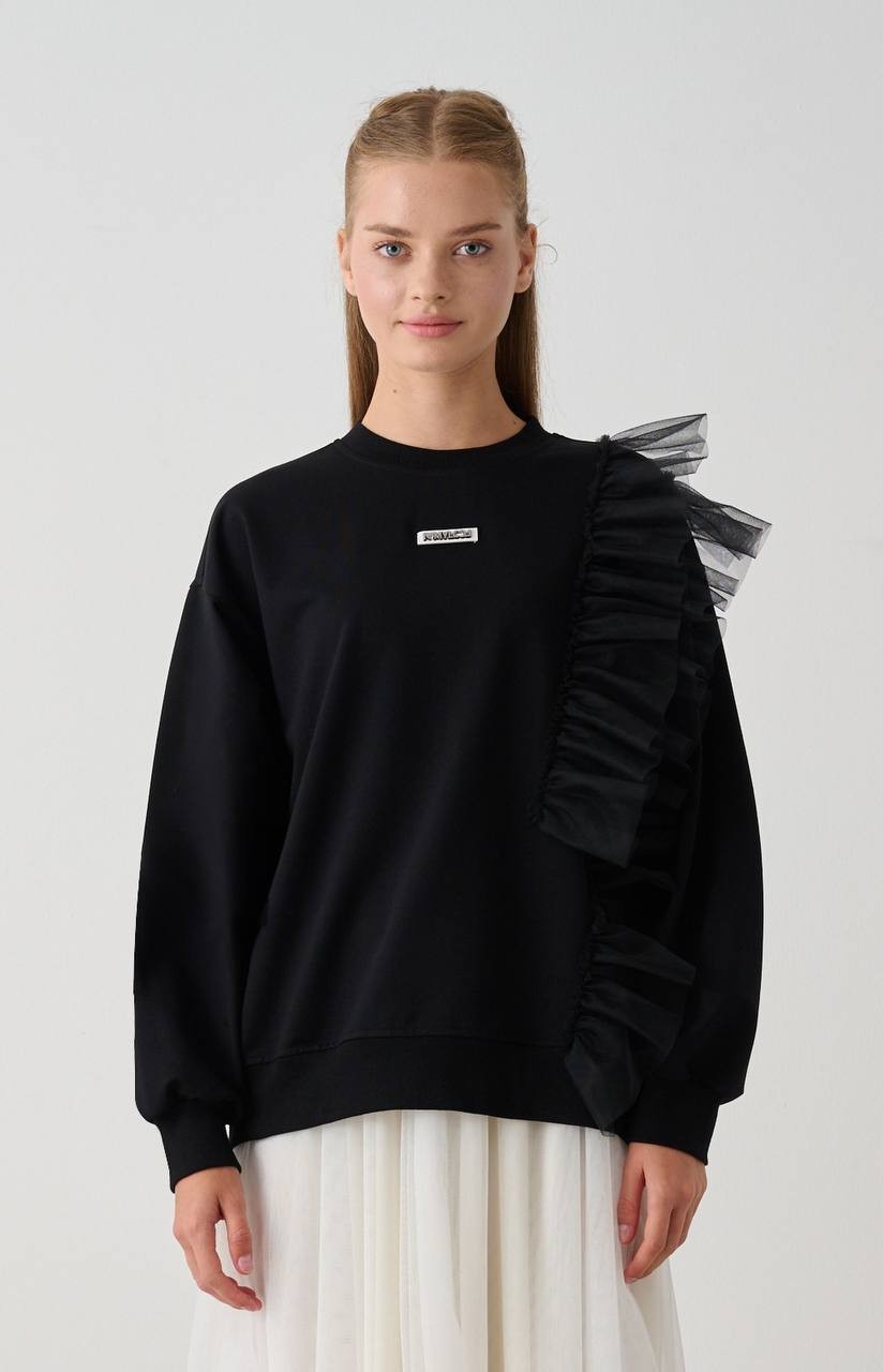Kız Çocuk Fırfırlı Baskılı 2 İplik Sweat