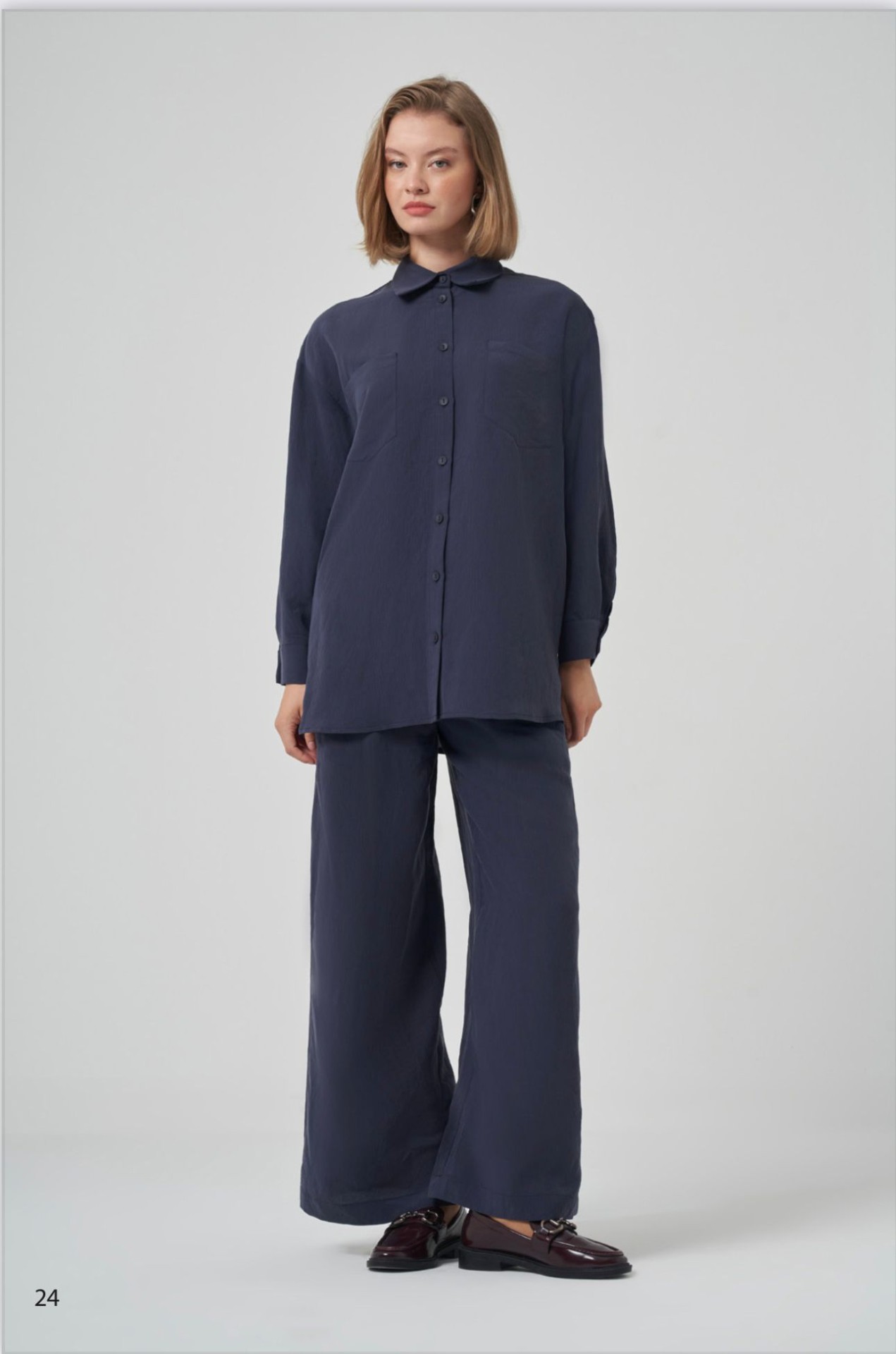 Nuss 1021 Çift Cepli Gömlek Bol Pantolon Fitilli Modal Takım