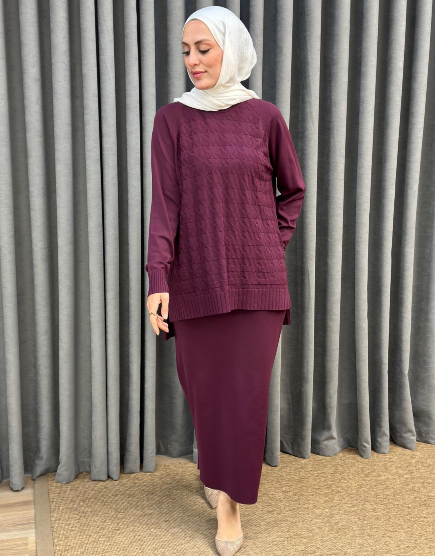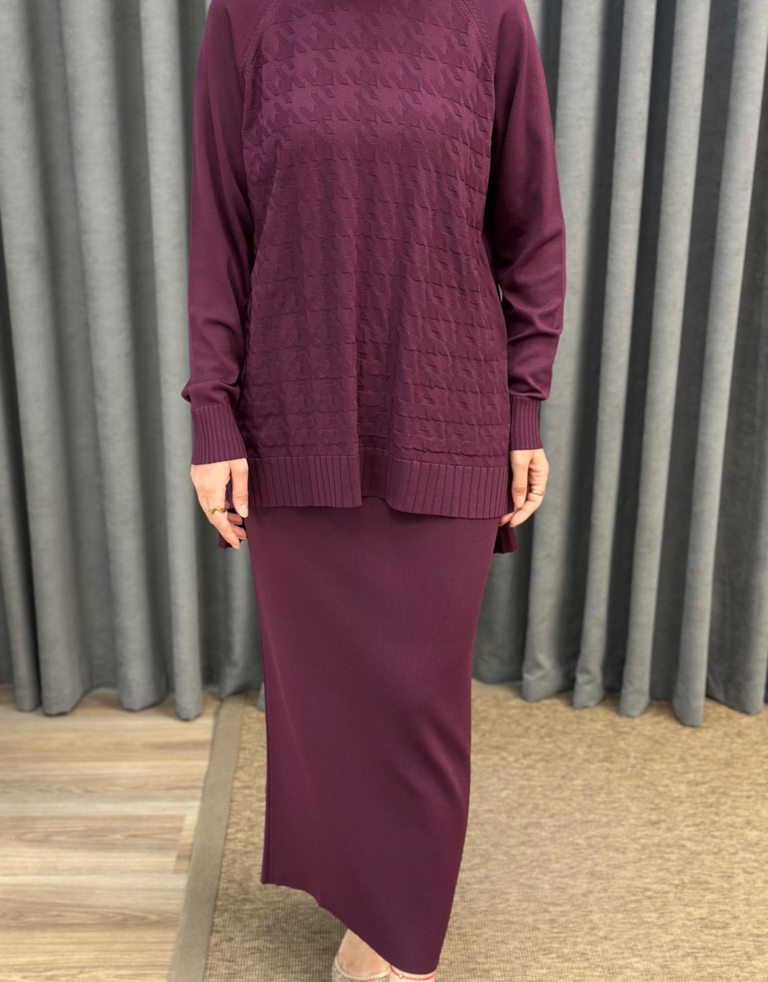Nuss 1350 Kazayağı Desenli Tunik Kalem Etekli Merserize Takım