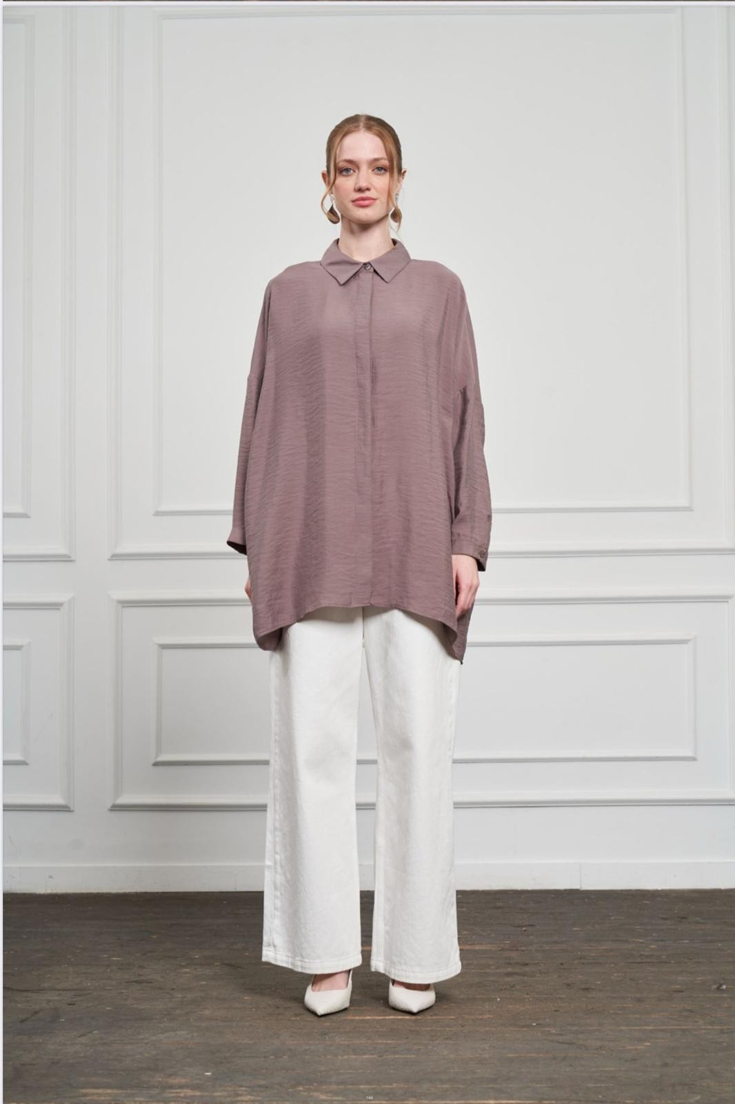 Gizli Düğmeli Düşük Omuzlu Etek Ucu Verev Kırışmaz İç Göstermez