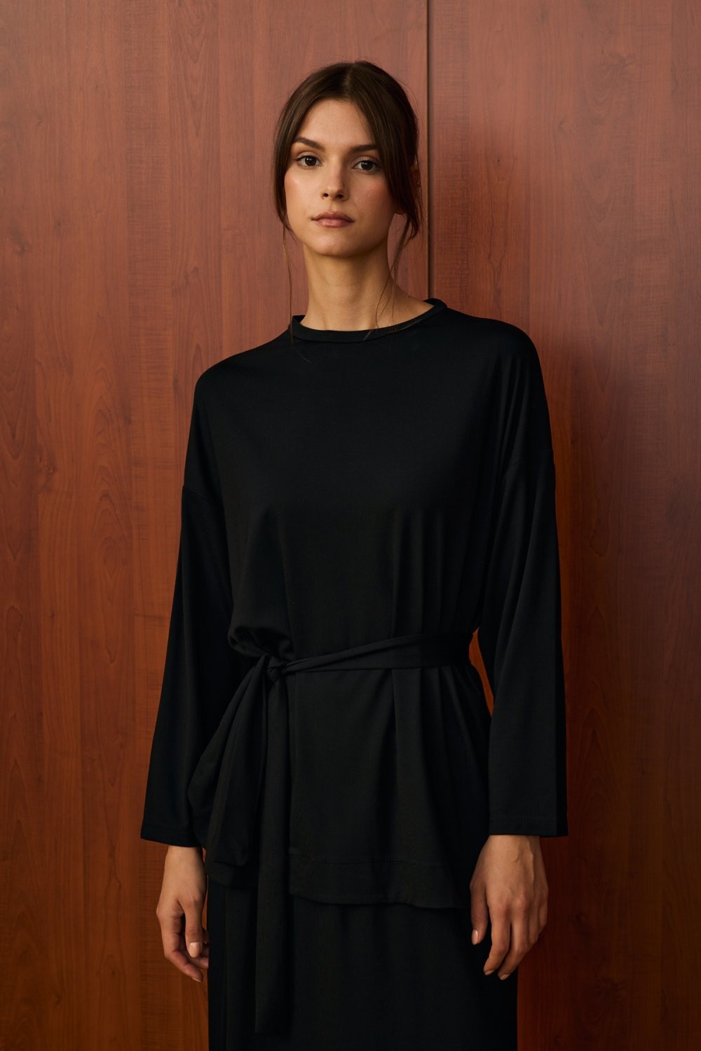 Üst parça: Düz kesim, bisiklet yaka, uzun kollu ve rahat formda