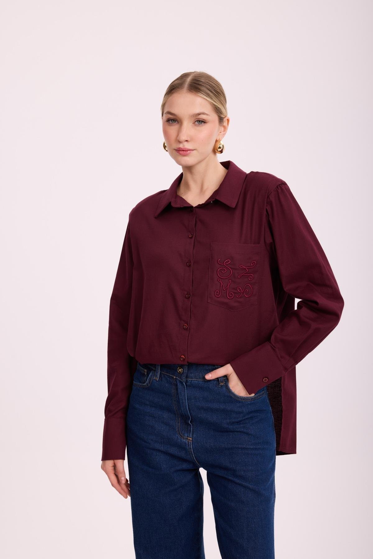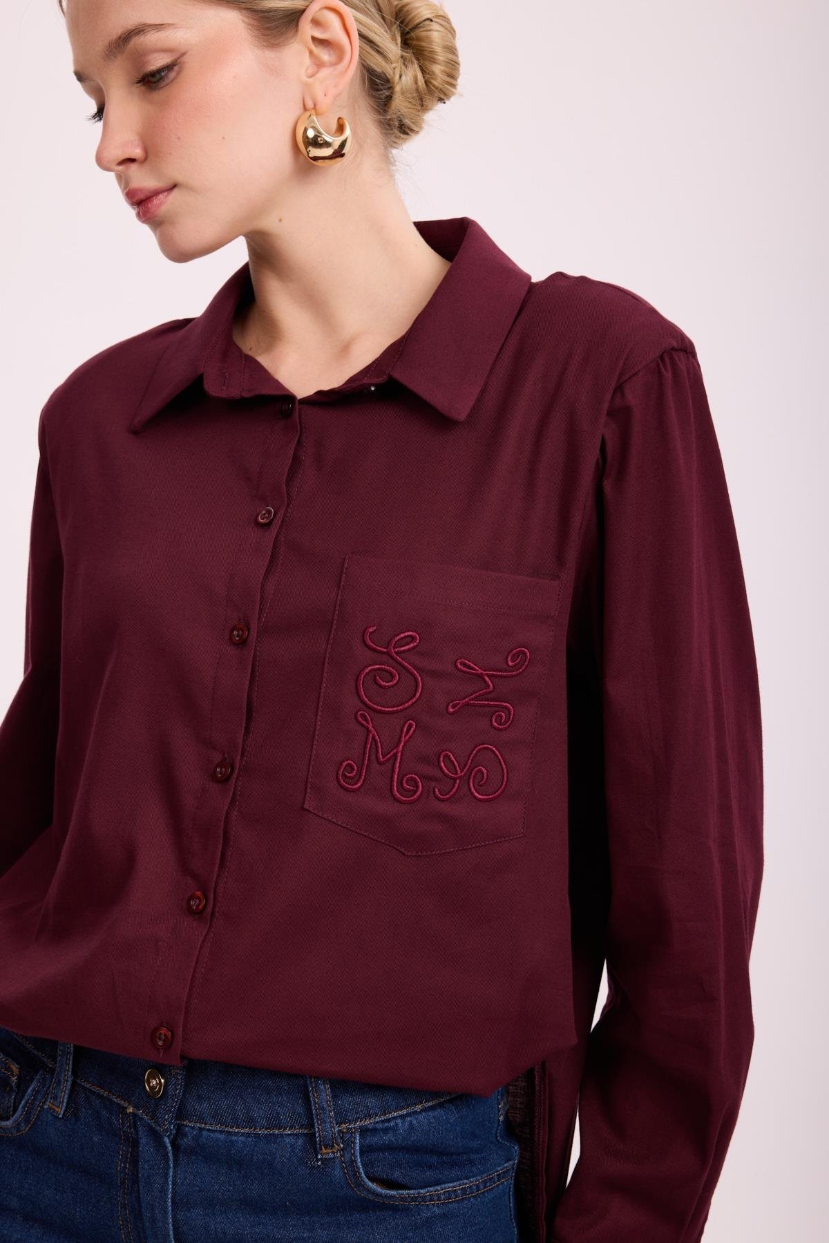 Gömlek Yaka Takma Kol Omuzları İnce Vatkalı Yandan Yırtmaçlı