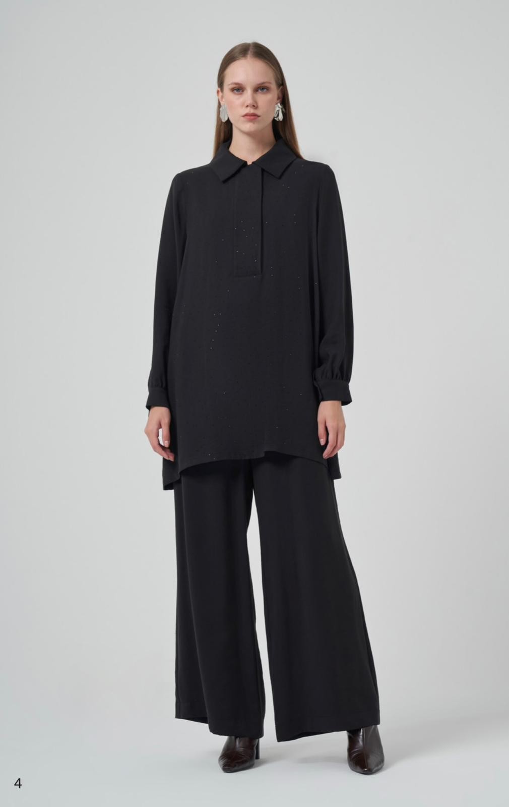Tunik Gömlek Yaka Takma Kol Yarım Gizli Düğmeli Rahat Kalıptır