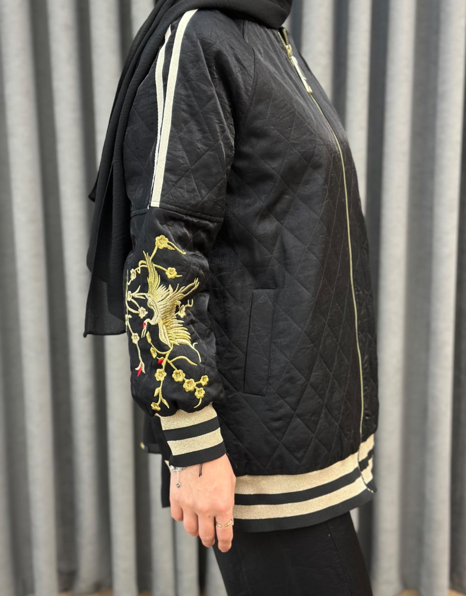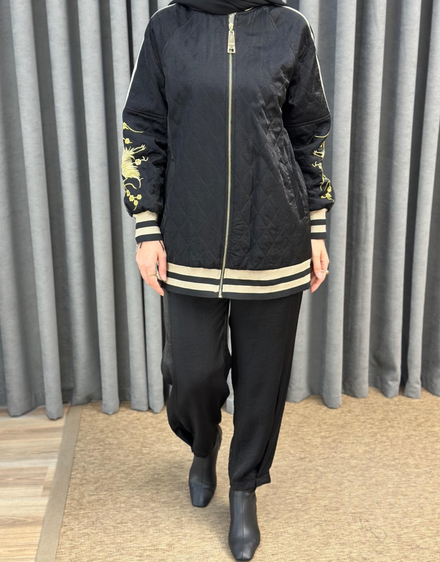 Kap Sıfır Yaka Düşük Kol Kolu Büzgülü Fermuarlı Cepli