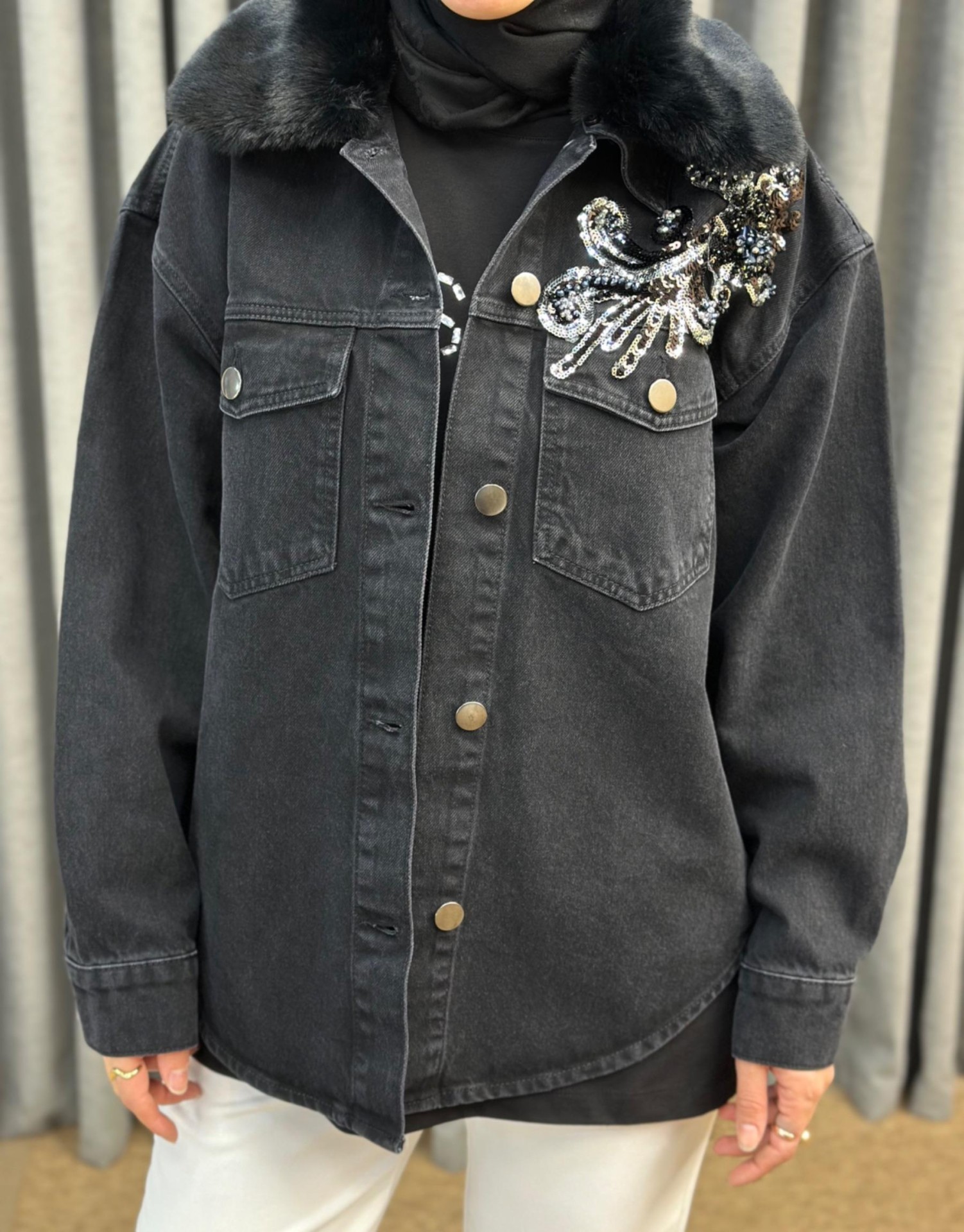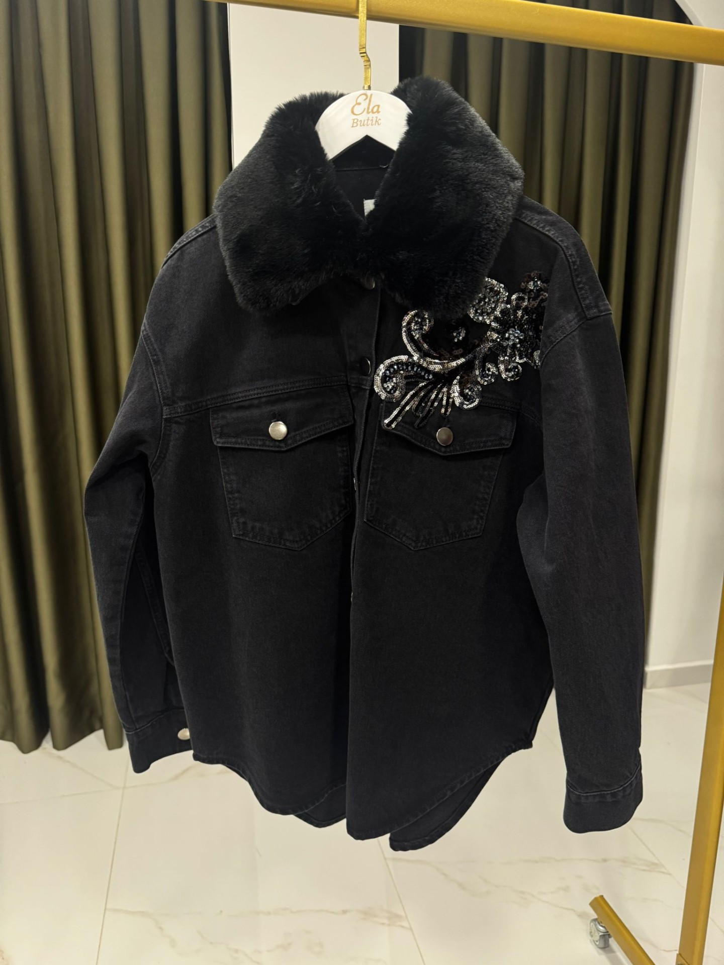 Missemramiss 4909 Kürklü İşlemeli Denim Ceket