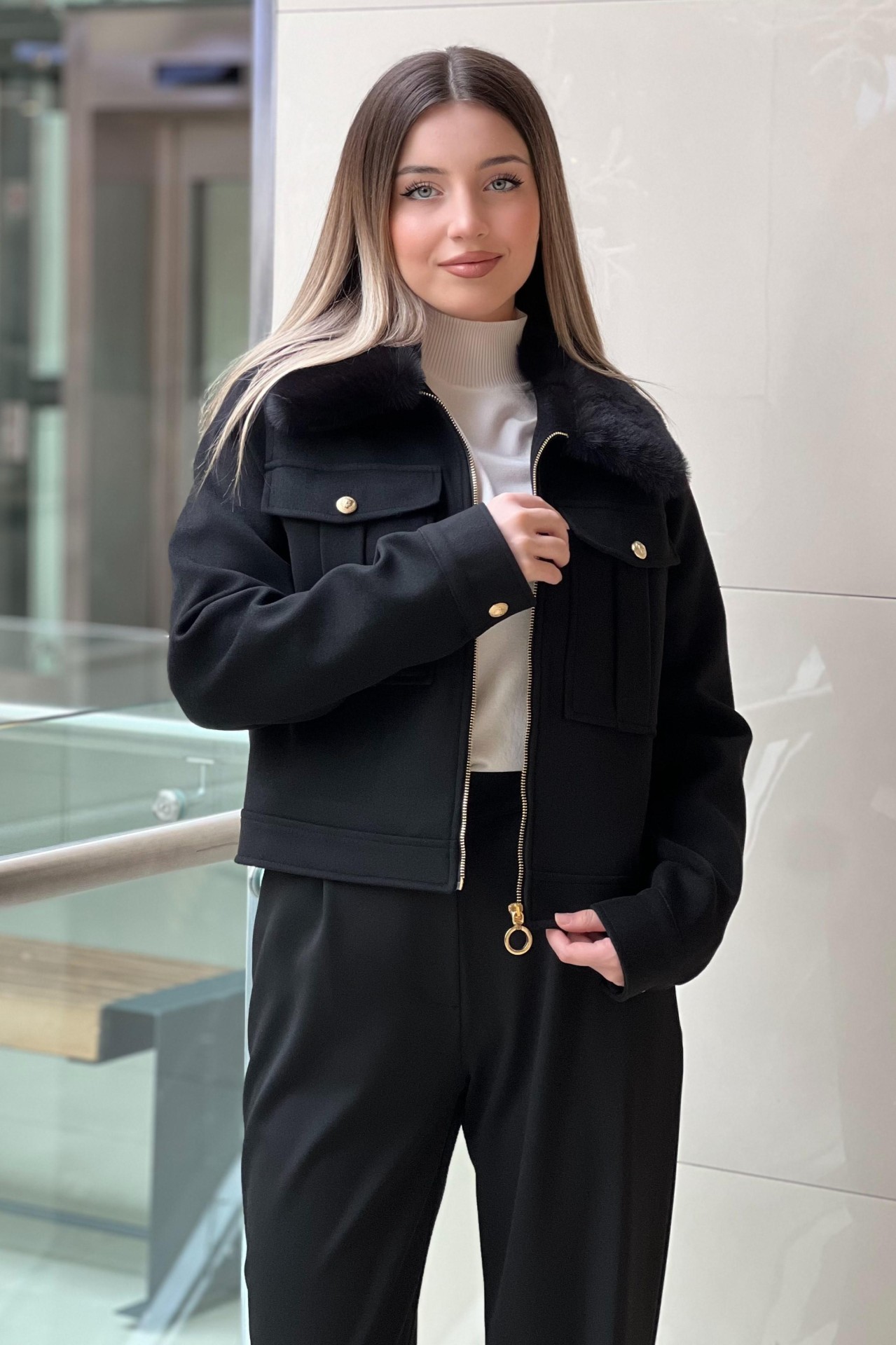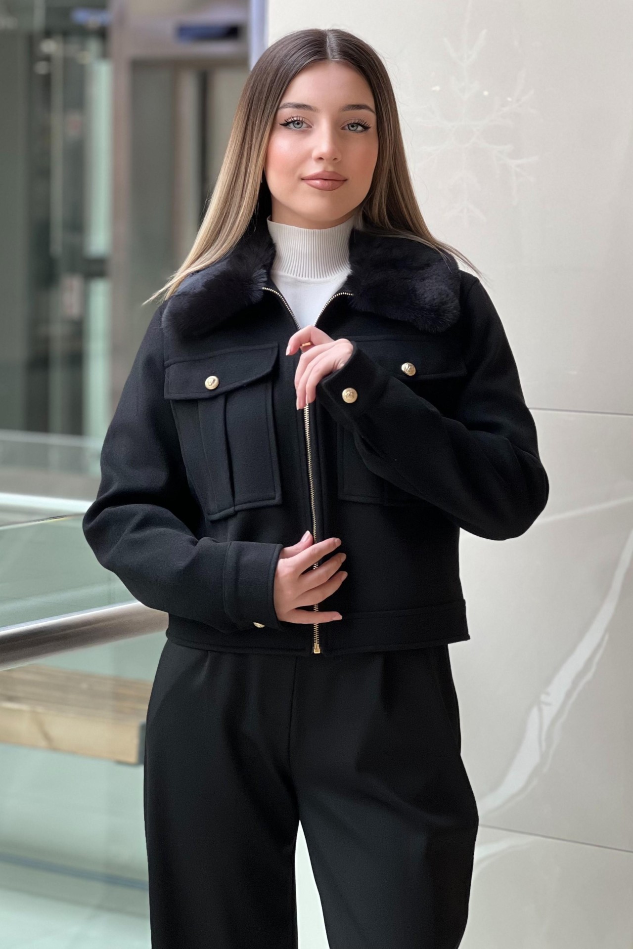 Çıkartılabilir Kürk Yaka Takma Kol Cepli