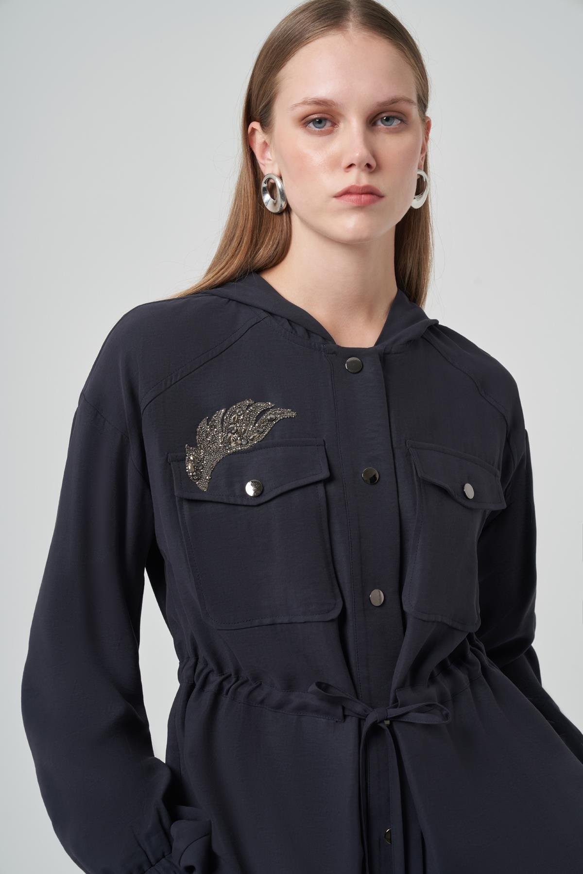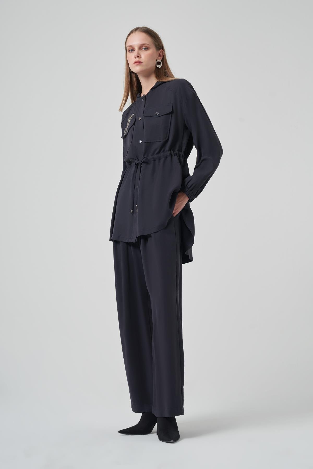 Tunik Gömlek Yaka Takma Kol Yarım Gizli Düğmeli Rahat Kalıptır