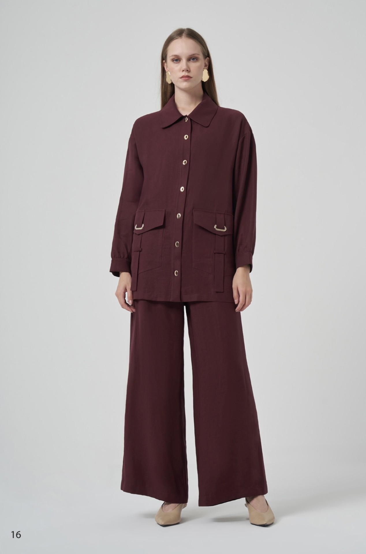 Tunik Gömlek Yaka Takma Kol Yarım Gizli Düğmeli Rahat Kalıptır