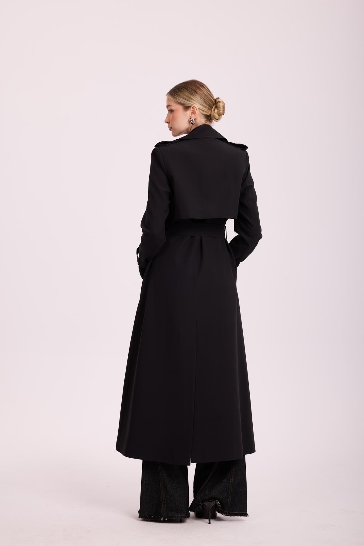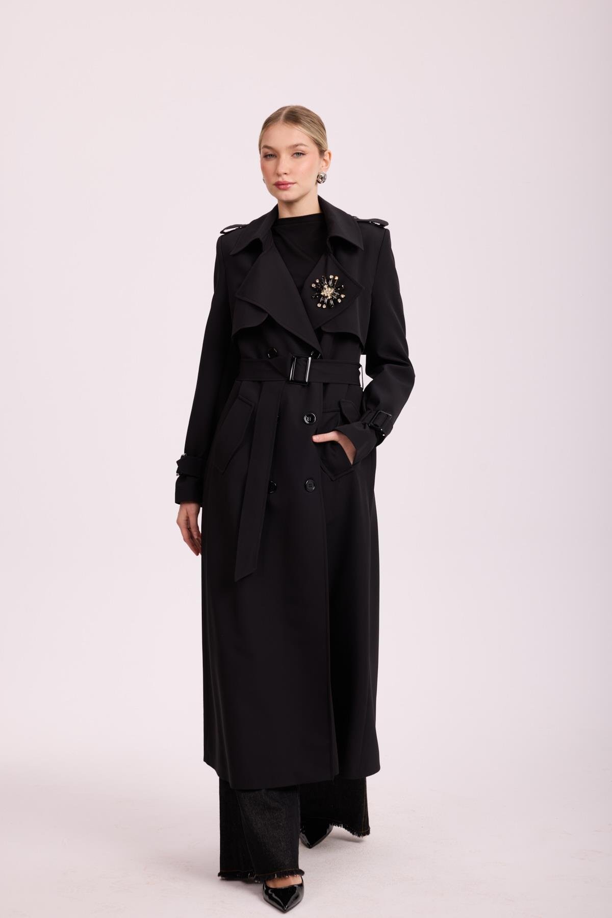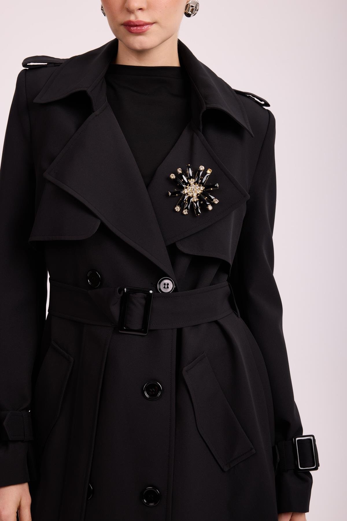 Kruvaze Yaka Omuz ve Kol Apoletli Kemerliİçi Renkli Desenli Astarlıdır