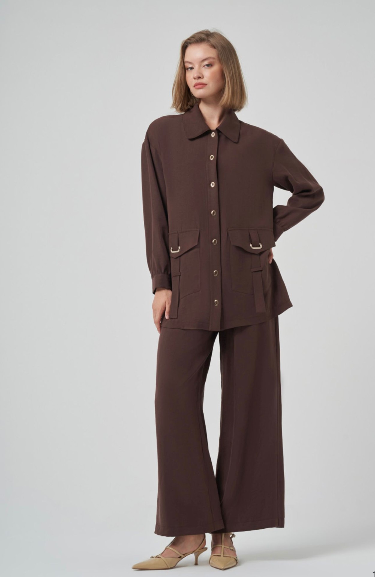 Tunik Gömlek Yaka Takma Kol Yarım Gizli Düğmeli Rahat Kalıptır