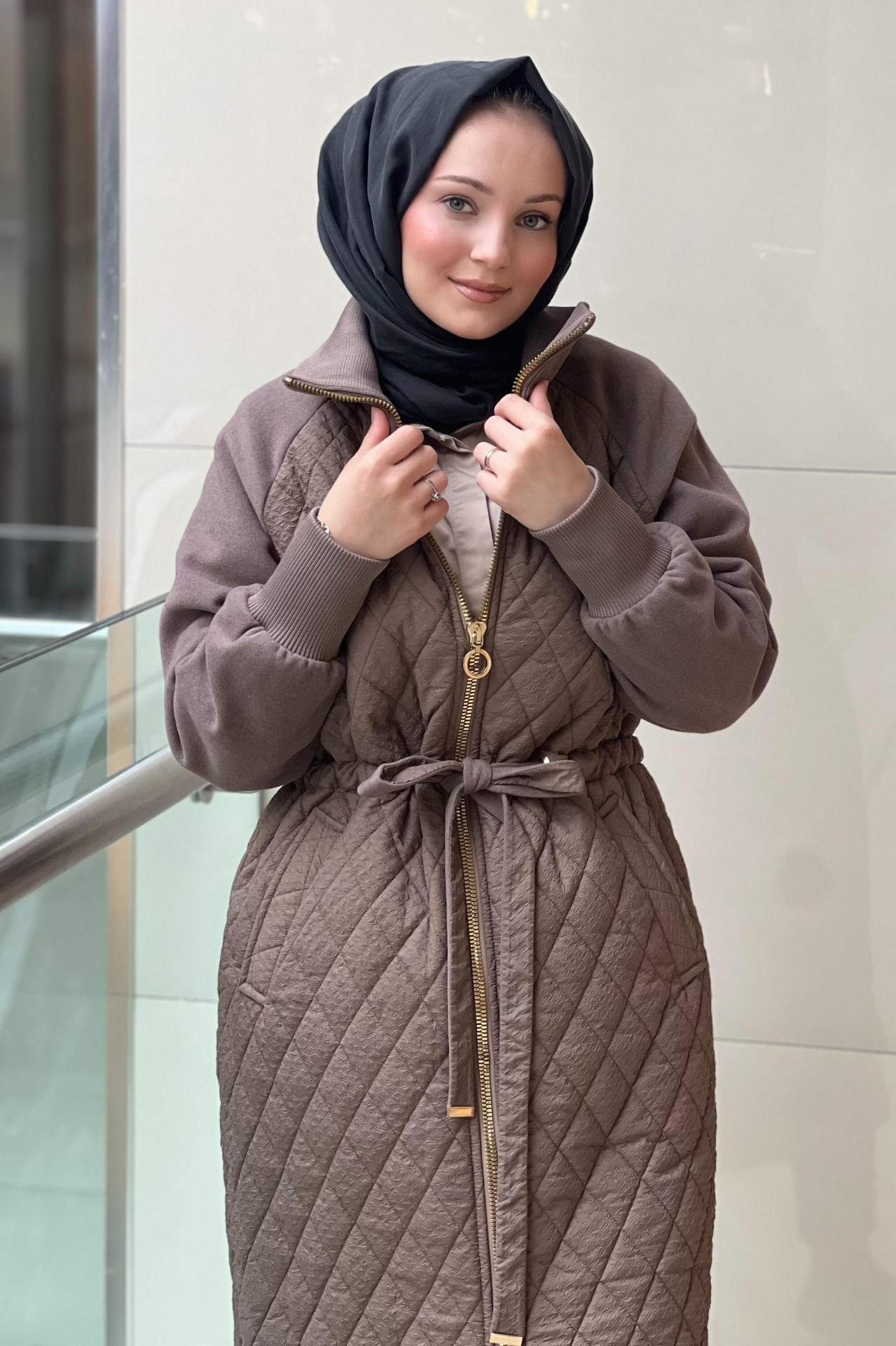 Dik Yaka Reglan Kol Fermuarlı Bel İp Büzgülü Cepli Ve Astarlıdır