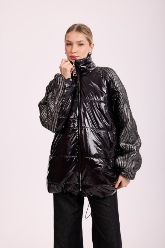 Dik Yaka Düşük Kol Önden Fermuarlı Etek Ucu Stoperli