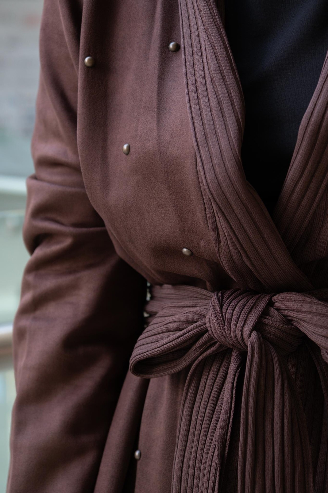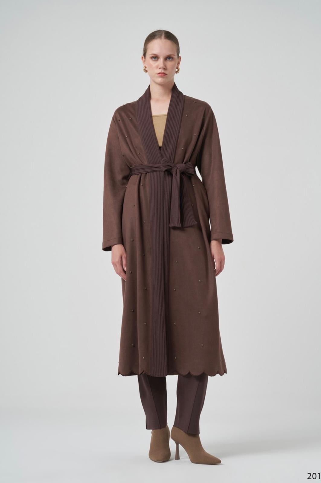 Önü Açık Takma Kol Kuşaklı Rahat Kalıp