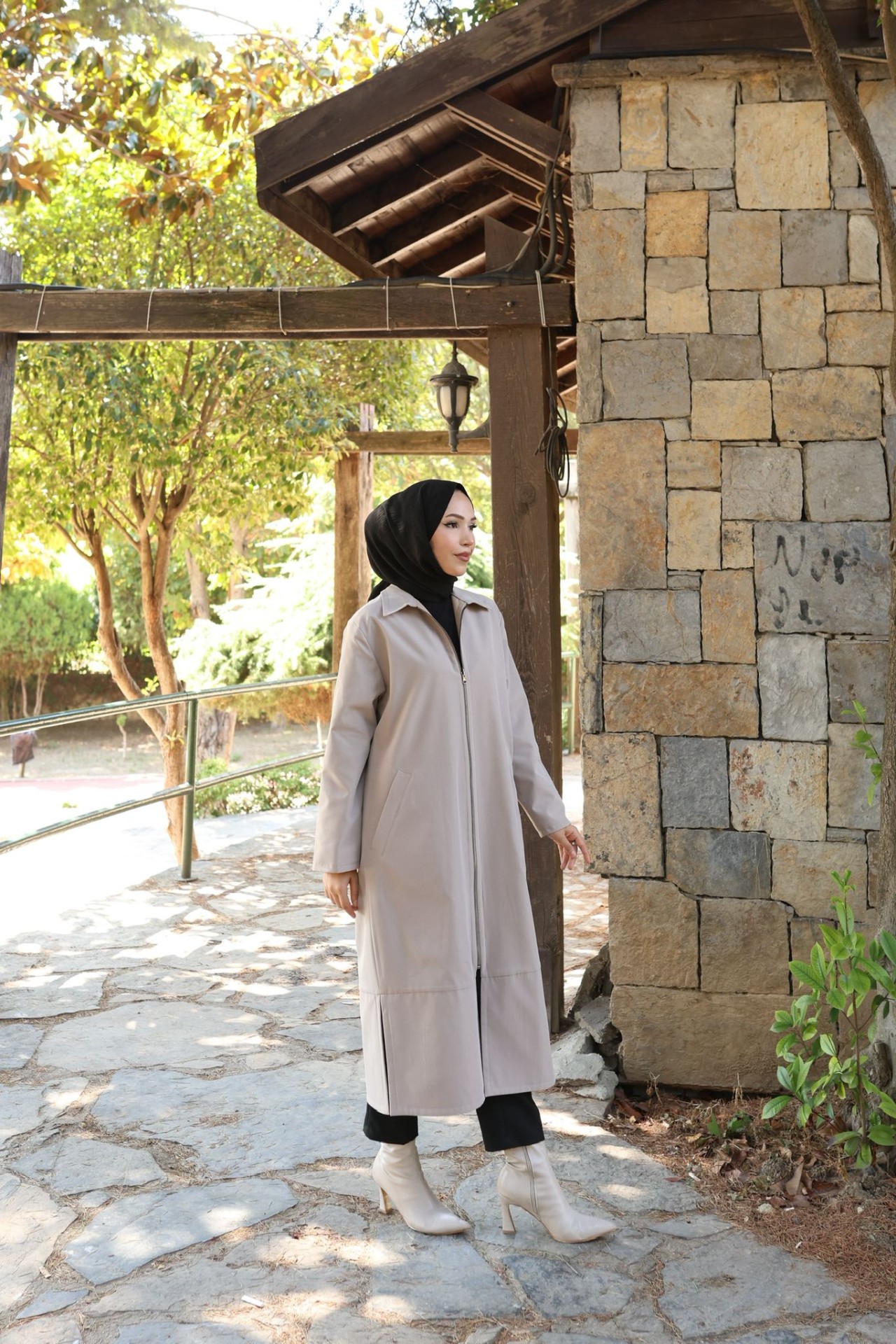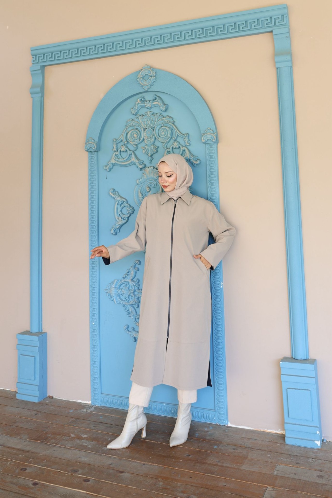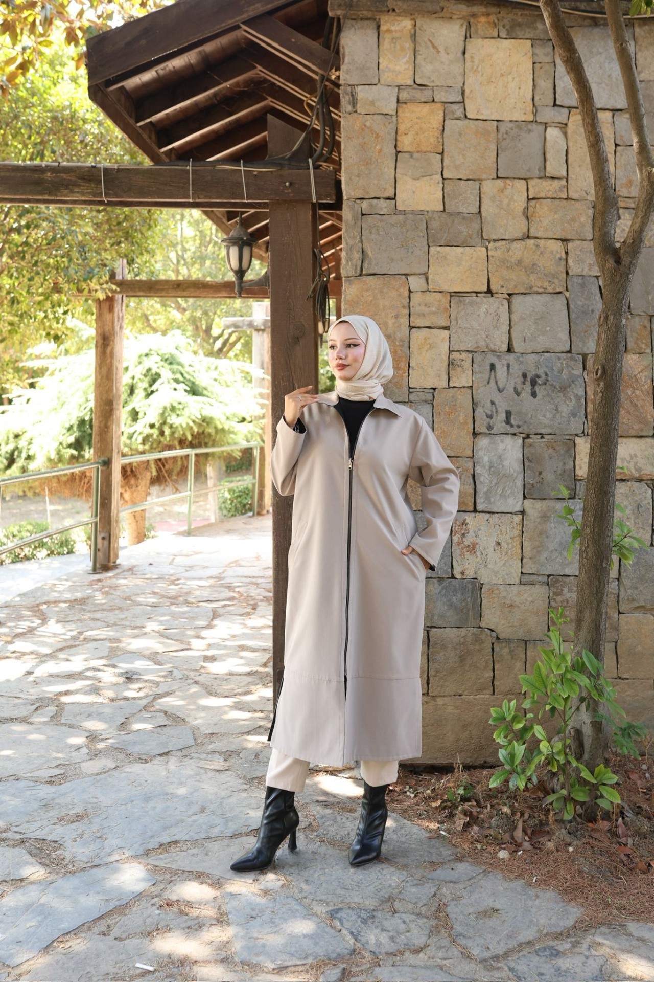Kap Sıfır Yaka Düşük Kol Kolu Büzgülü Fermuarlı Cepli