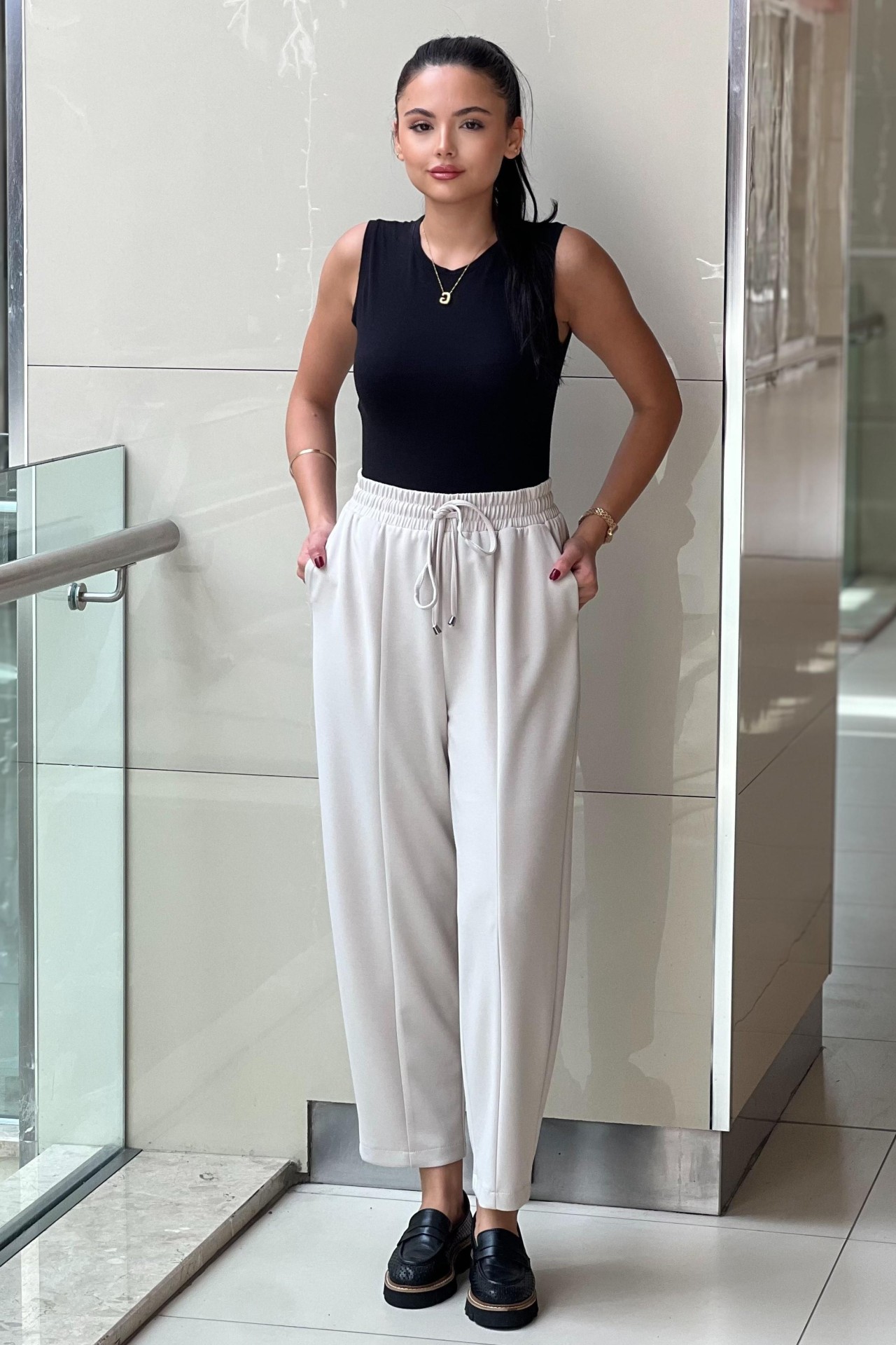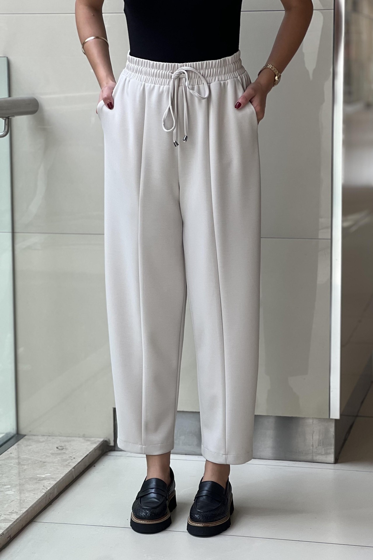 Beli Lastikli İp Bağlı Cepli Ütü Dikiş İzli Havuç Kesim Rahat Kalıptır