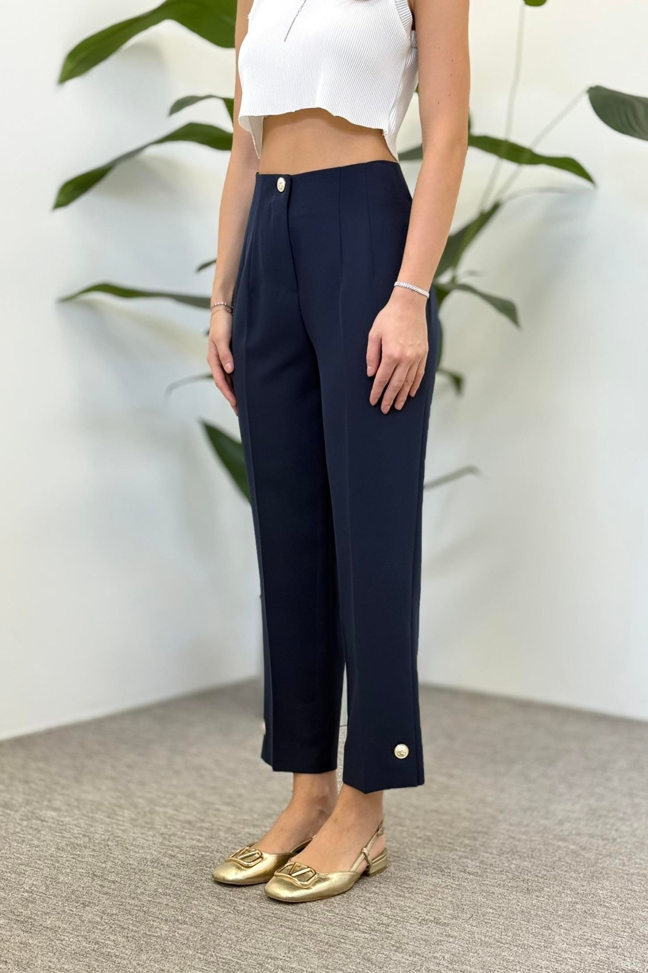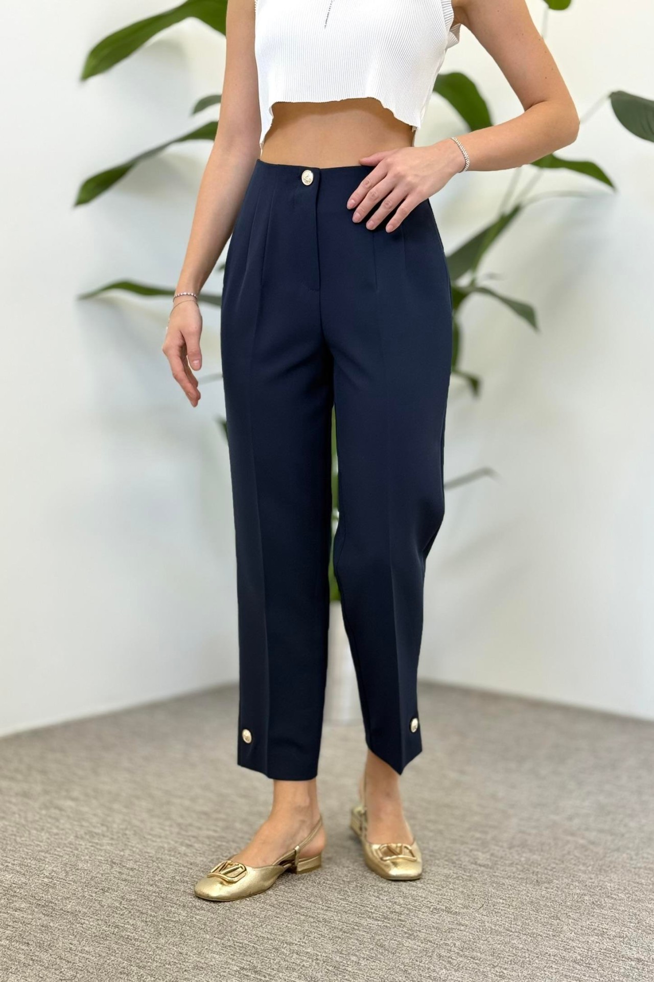 Önden Düğme Ve Fermuarlıdır Cepsiz Çift Pileli Havuç Kesimdir