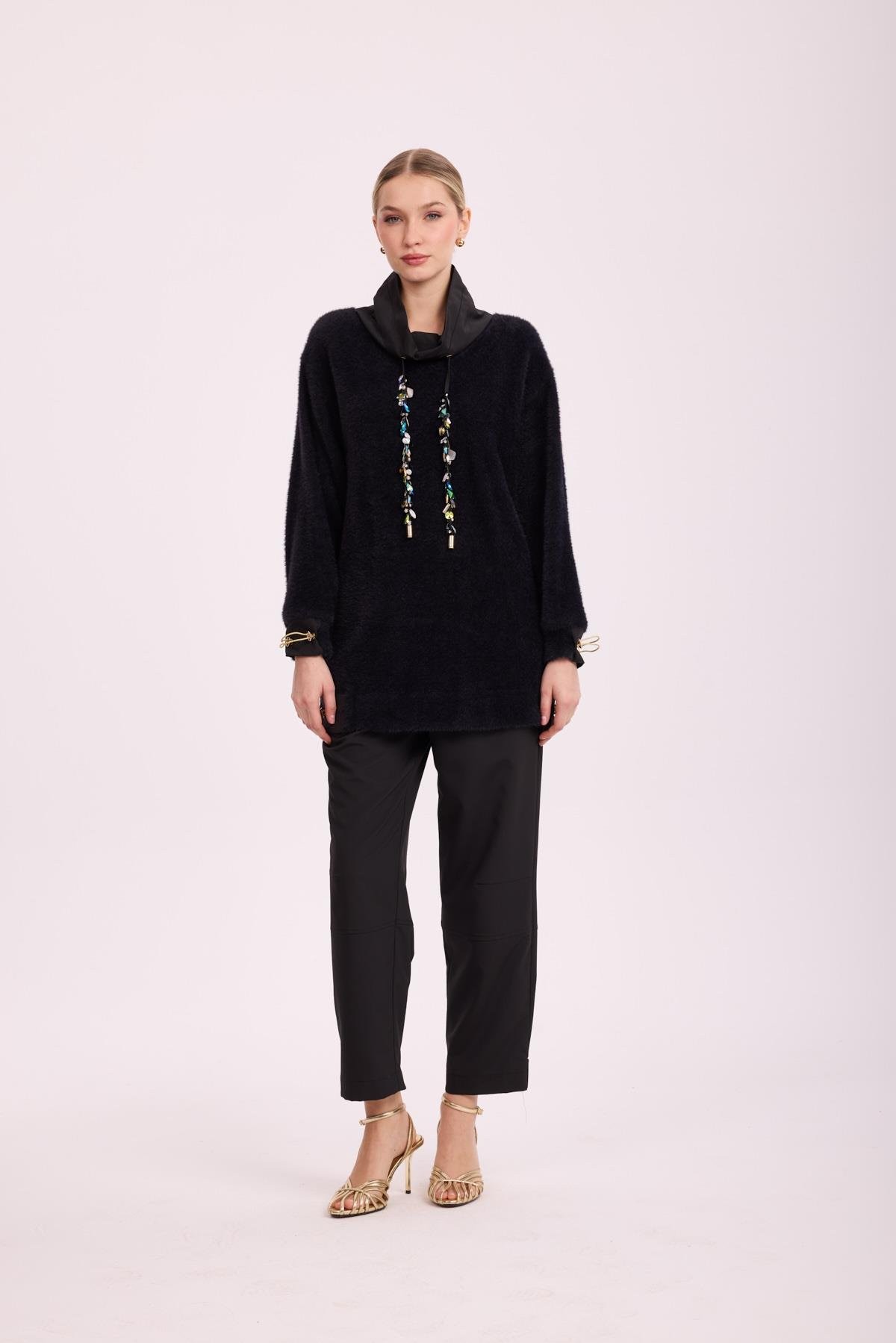 Pantolon Beli Lastikli Cepli Paçası Çıtçıt Detaylı Havuç Kesim