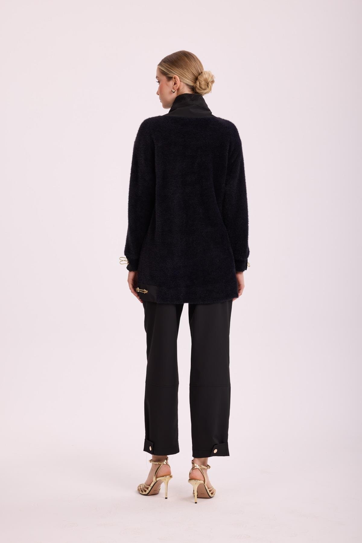 Kap Sıfır Yaka Düşük Kol Kolu Büzgülü Fermuarlı Cepli