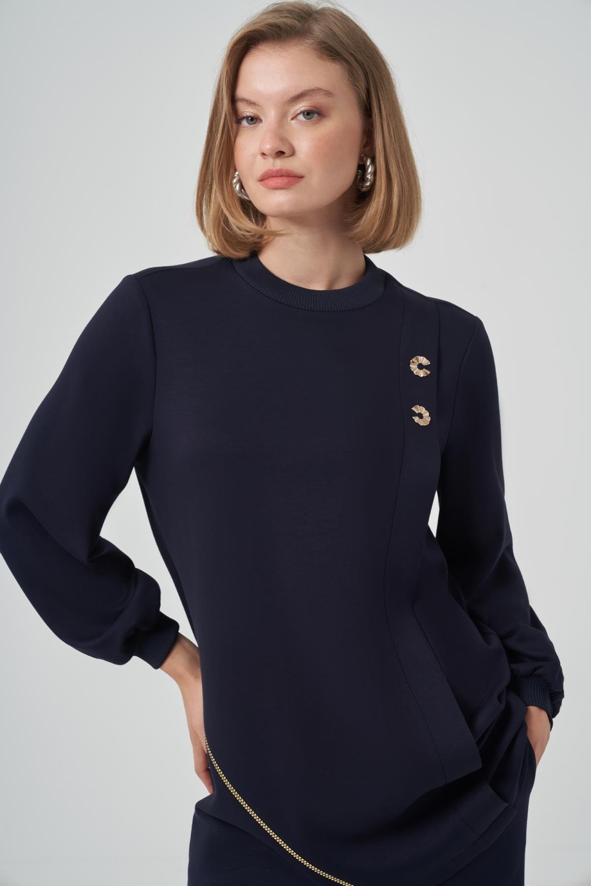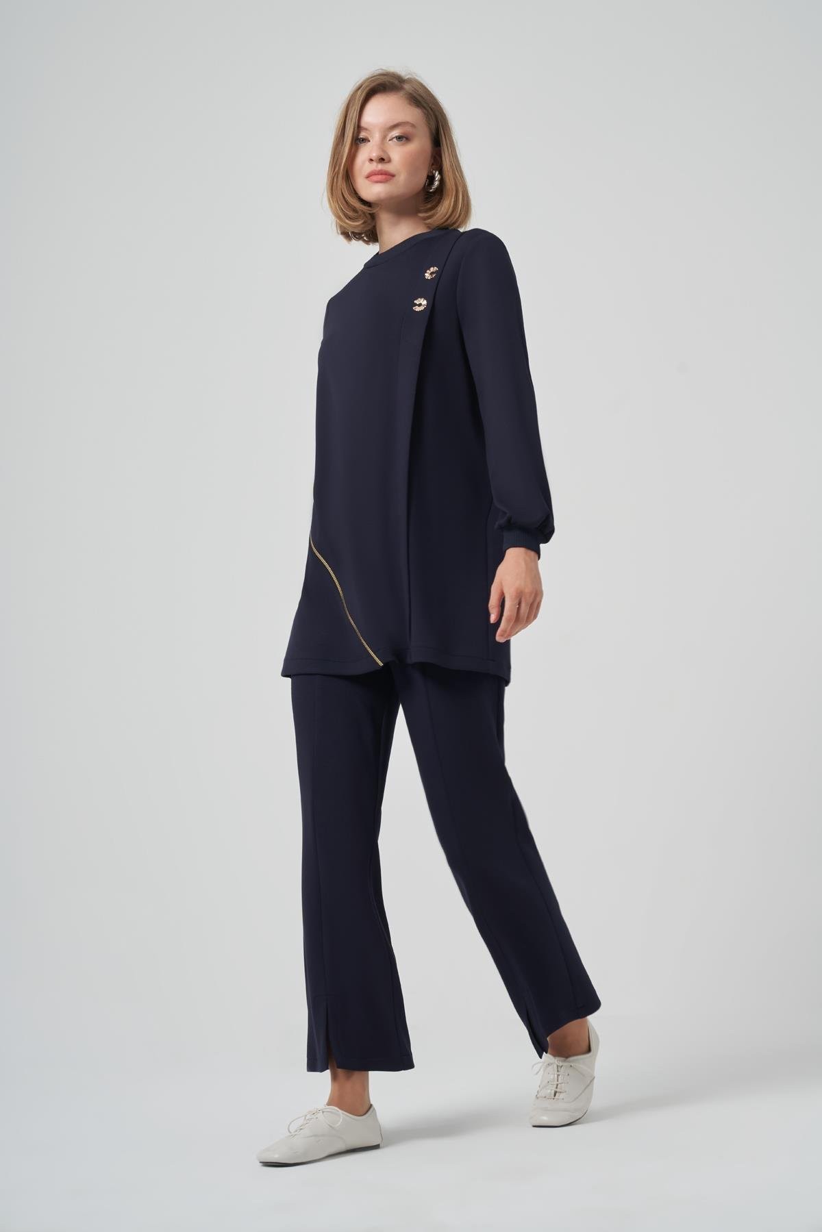Nuss 1024 Asimetrik Fermuar Detaylı Tunik Pantolon Takım