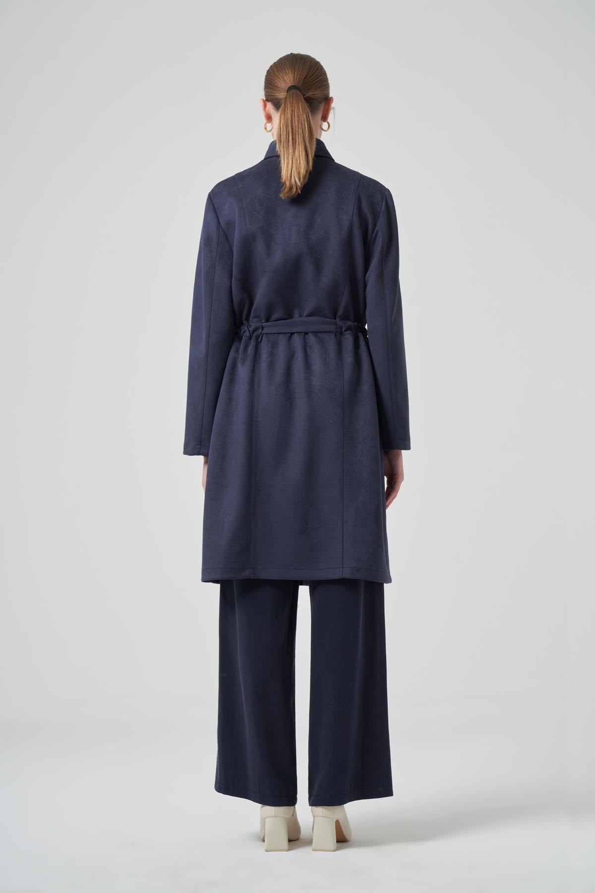 Önü Açık Takma Kol Kuşaklı Rahat Kalıp