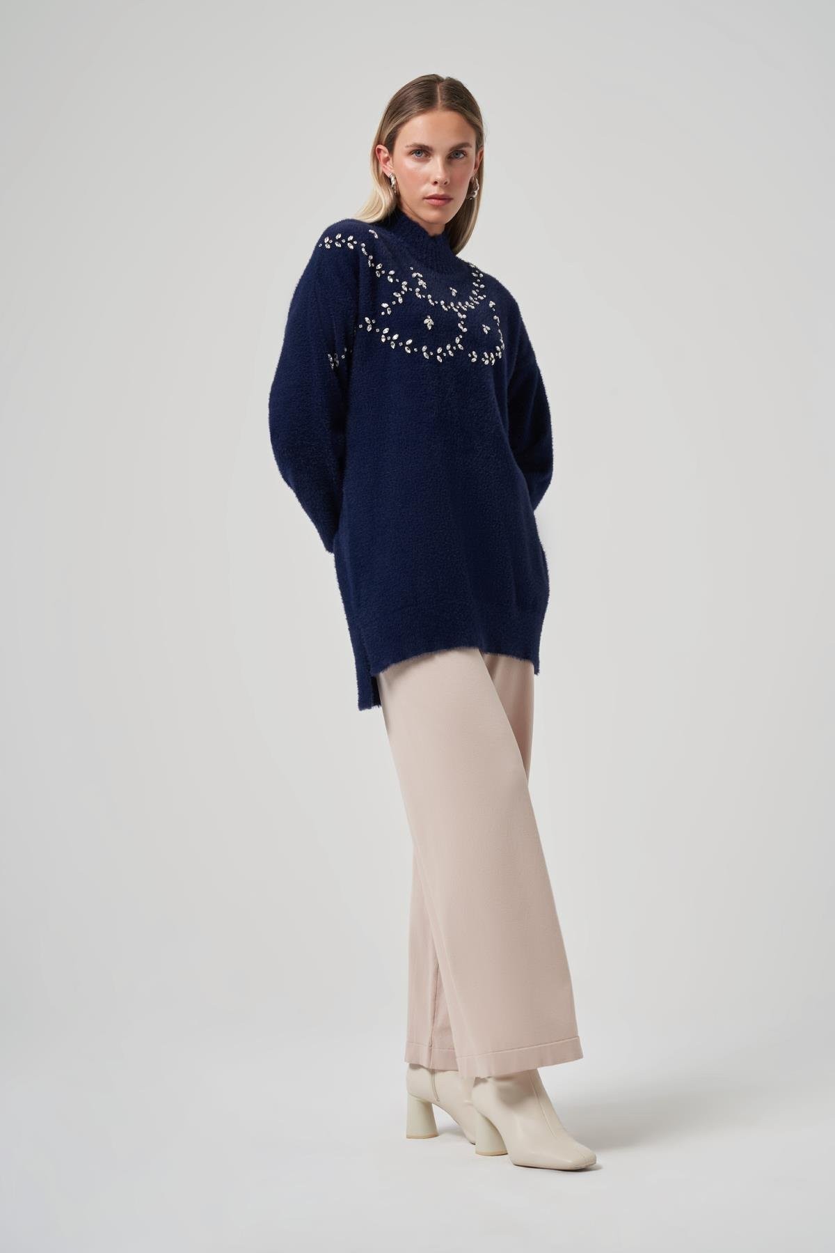 Nuss 7002 Taş İşlemeli Angora Kazak Tunik