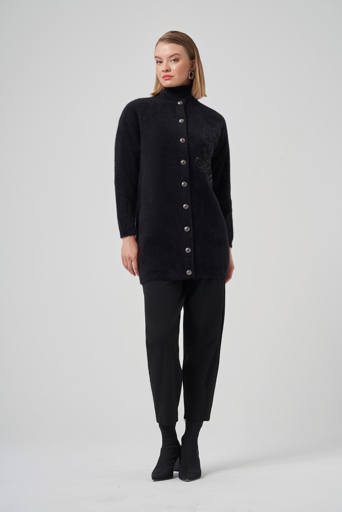 Nuss 7007 Önden Çıtçıtlı Pul Payet Çiçek Nakışlı Angora Hırka