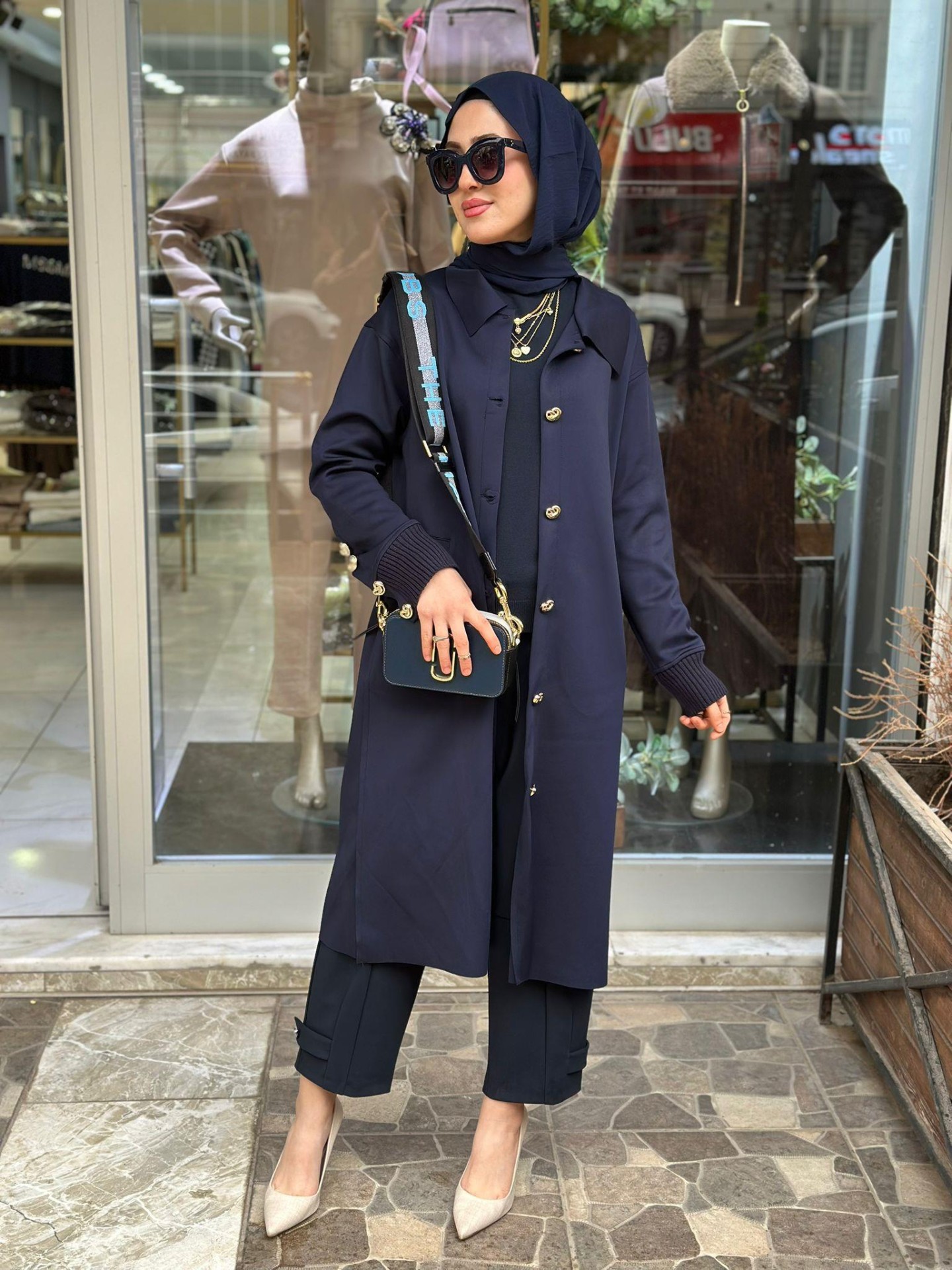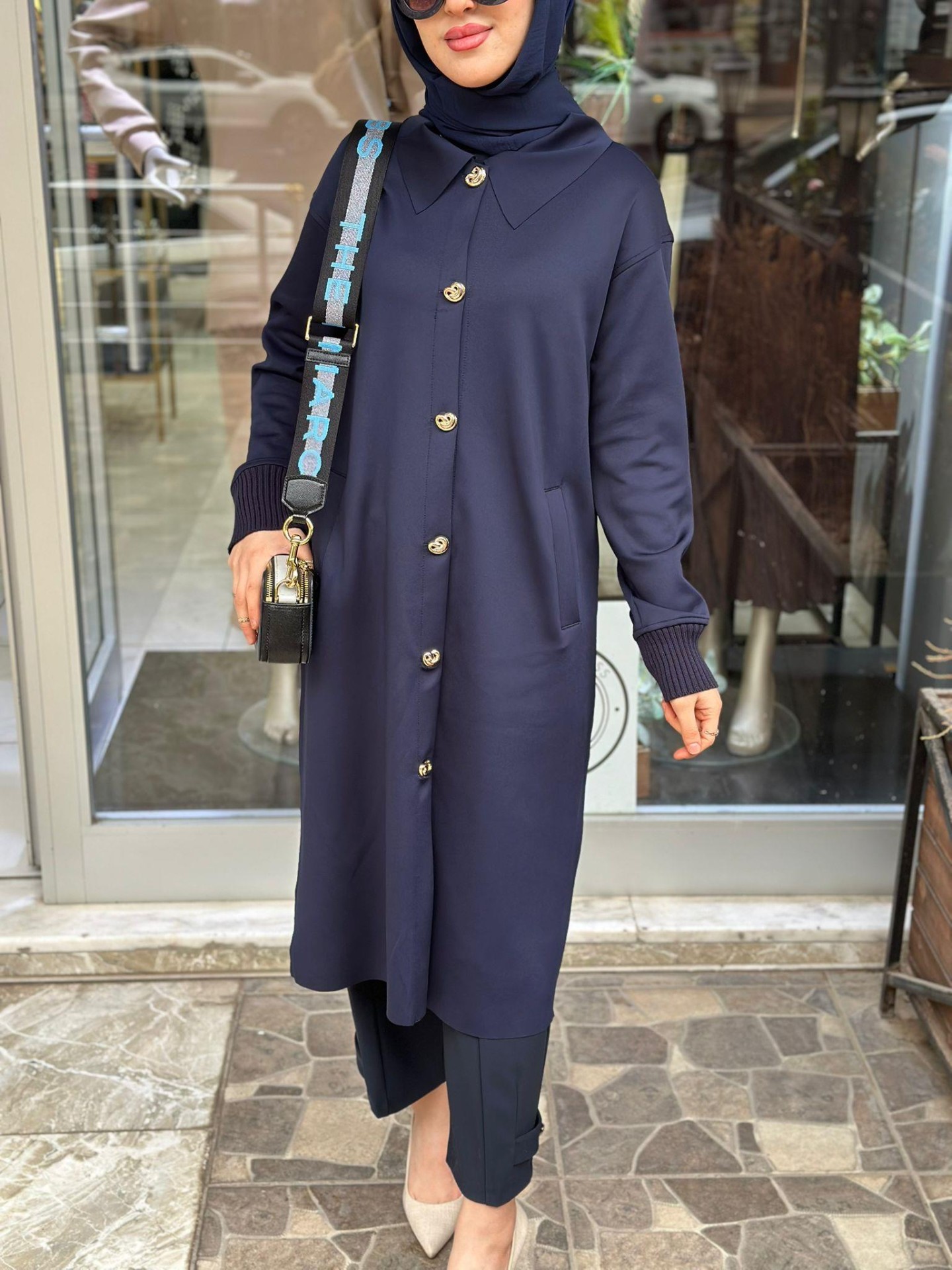 Yakası Dik Ribanalı Reglan Kol Kol Uçları Ribanalı Renkli Desenli Astarlıdır