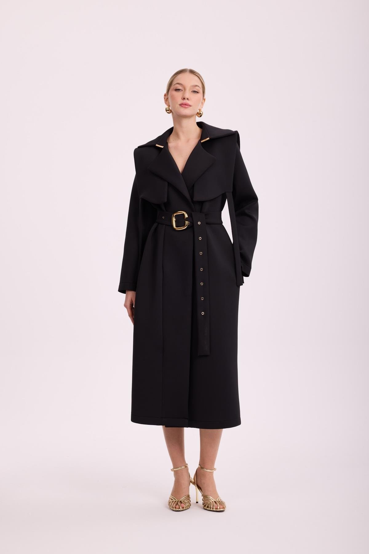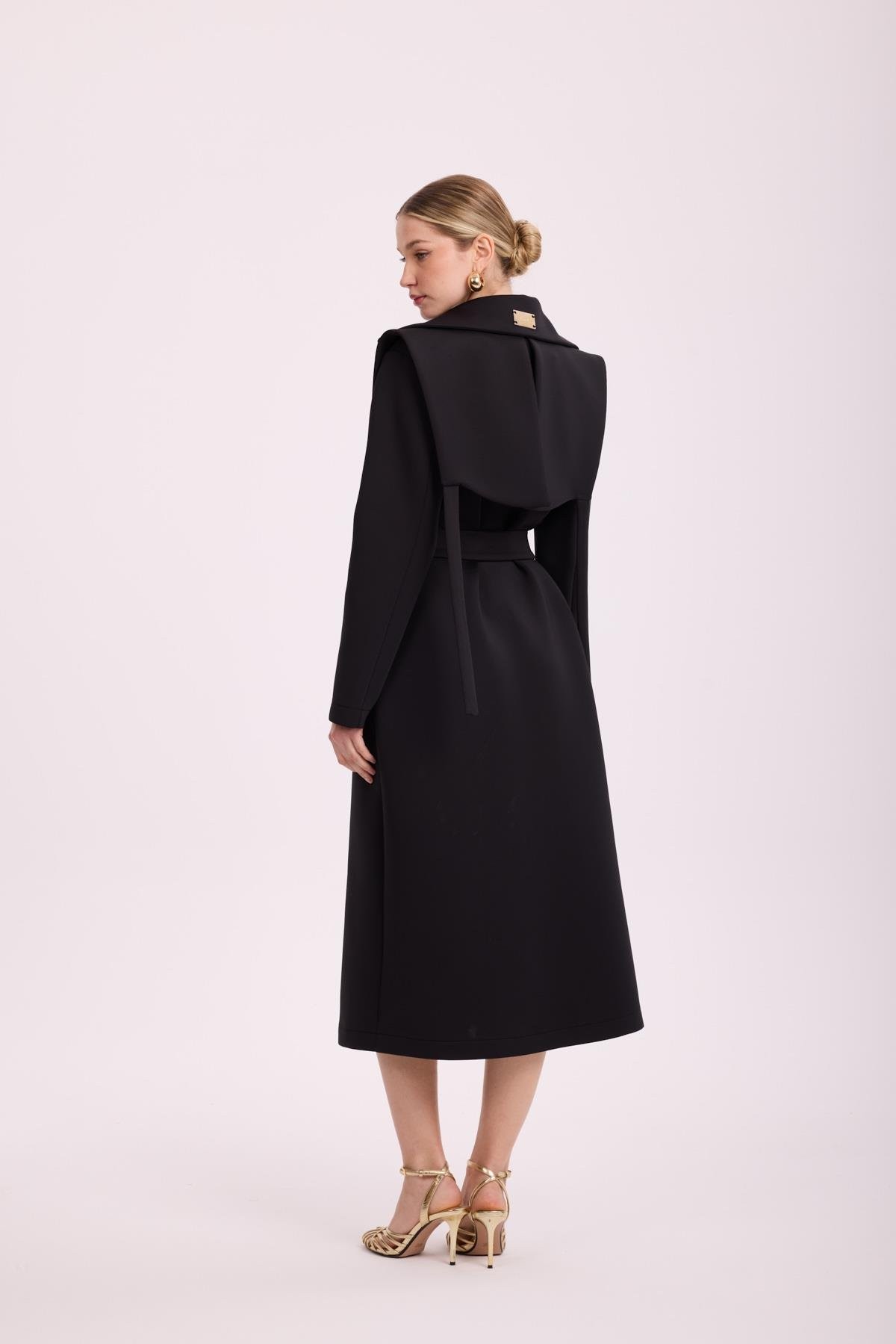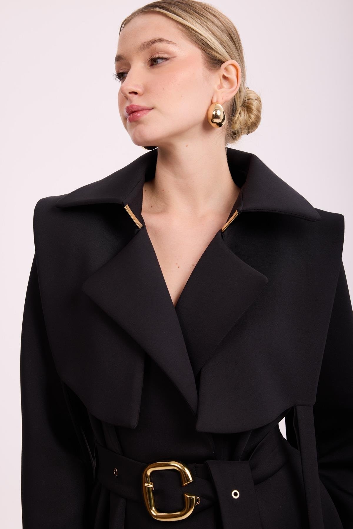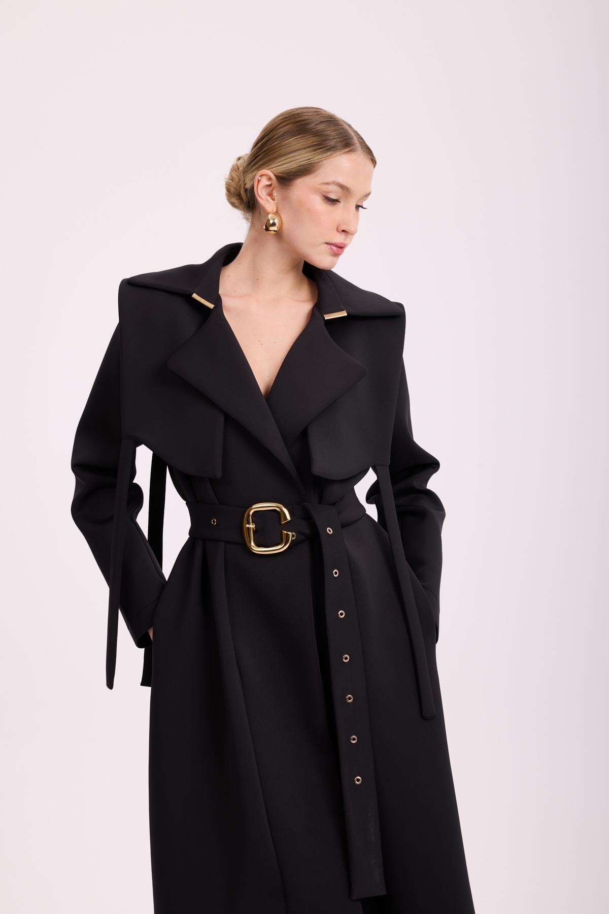 Kruvaze Yaka Omuz ve Kol Apoletli Kemerliİçi Renkli Desenli Astarlıdır