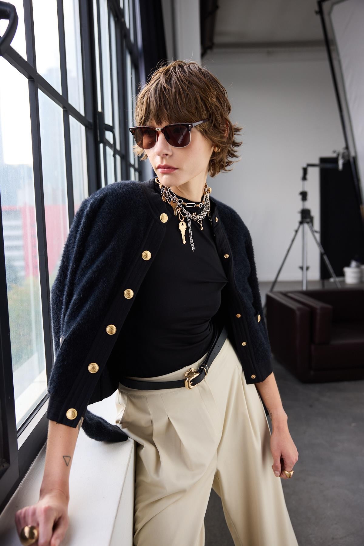 Sıfır Yaka Düşük Kol Önden Düğmeli Cepli