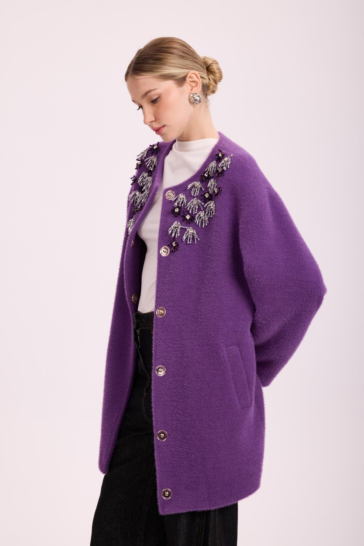 Dik Yaka Düşük Kol Önden Gizli Çıtçıtlı Cepli Ve Astarlıdır