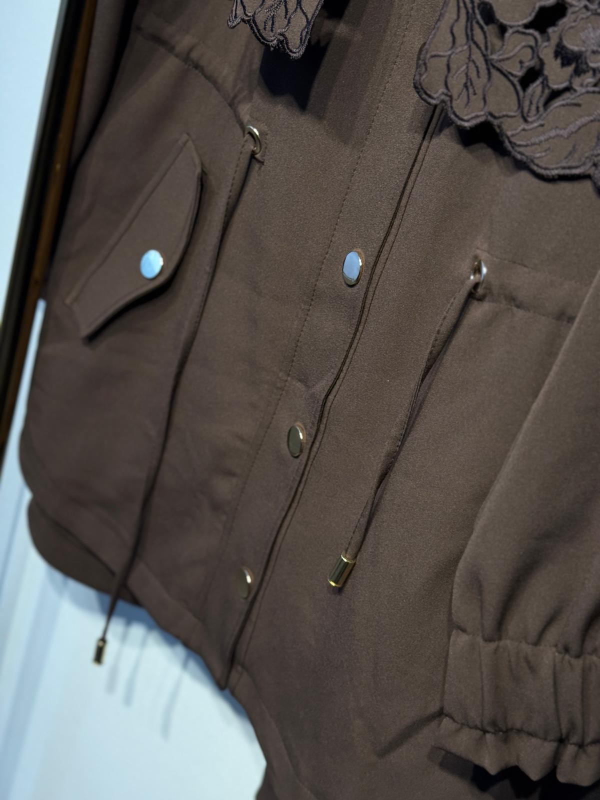 Kap Sıfır Yaka Düşük Kol Kolu Büzgülü Fermuarlı Cepli