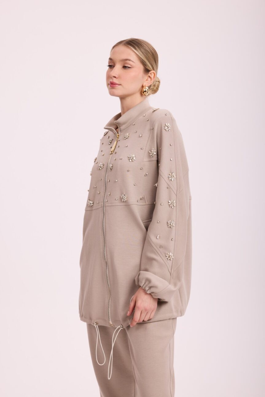 Kap Sıfır Yaka Düşük Kol Kolu Büzgülü Fermuarlı Cepli