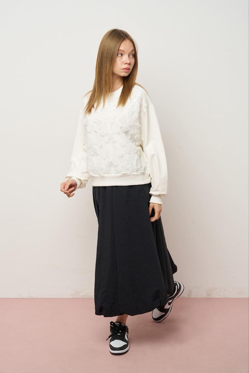 Kız Çocuk 7916 Önü Çiçek Tül 2 İplik Sweat