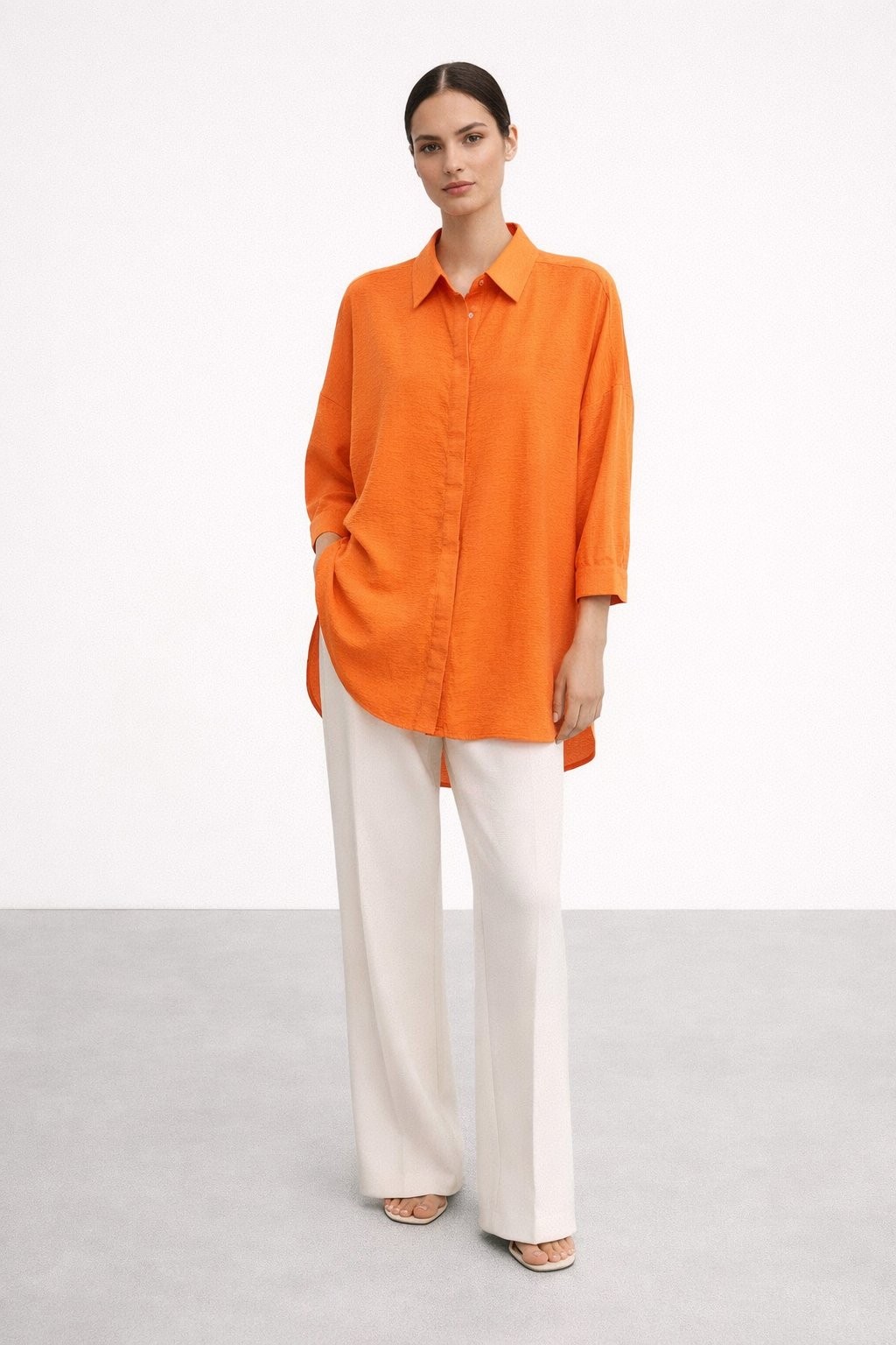 Gizli Düğmeli Düşük Omuzlu Etek Ucu Verev Kırışmaz İç Göstermez