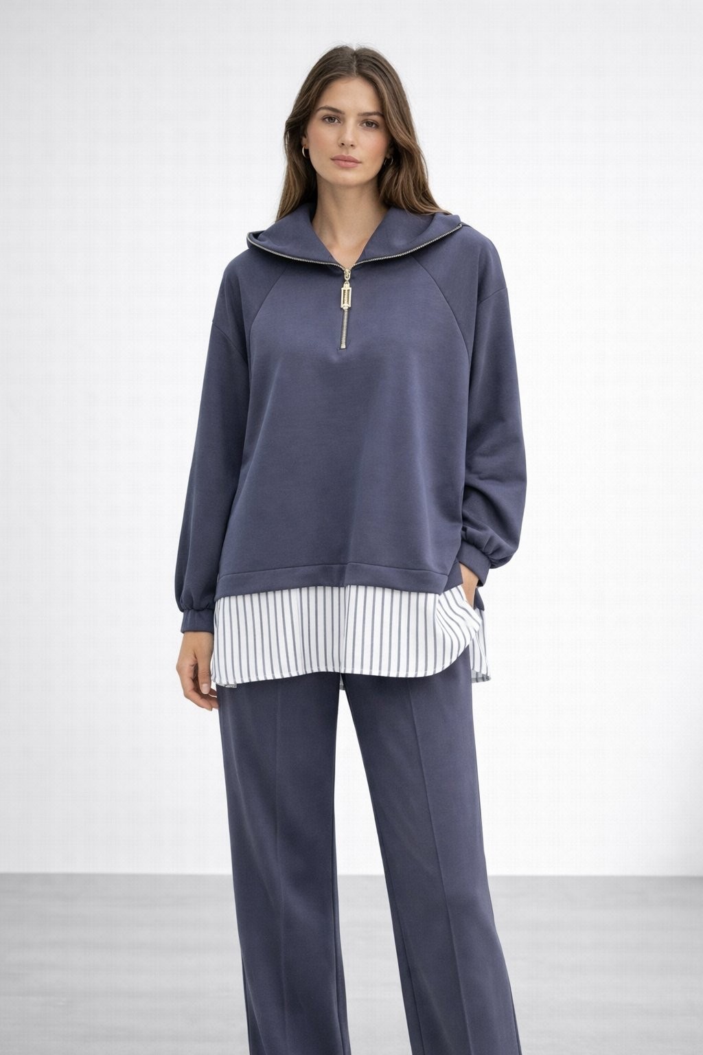 Tunik Gömlek Yaka Takma Kol Yarım Gizli Düğmeli Rahat Kalıptır