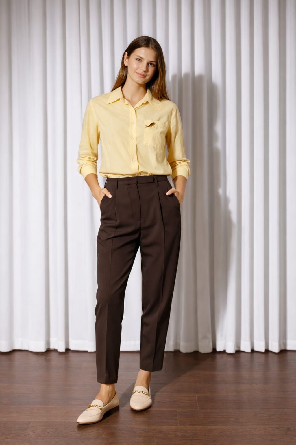 Gömlek Yaka Takma Kol Önde Gizli Düğmeli Cepli Oval Kesim Derin Yırtmaçlı Rahat Kalıp