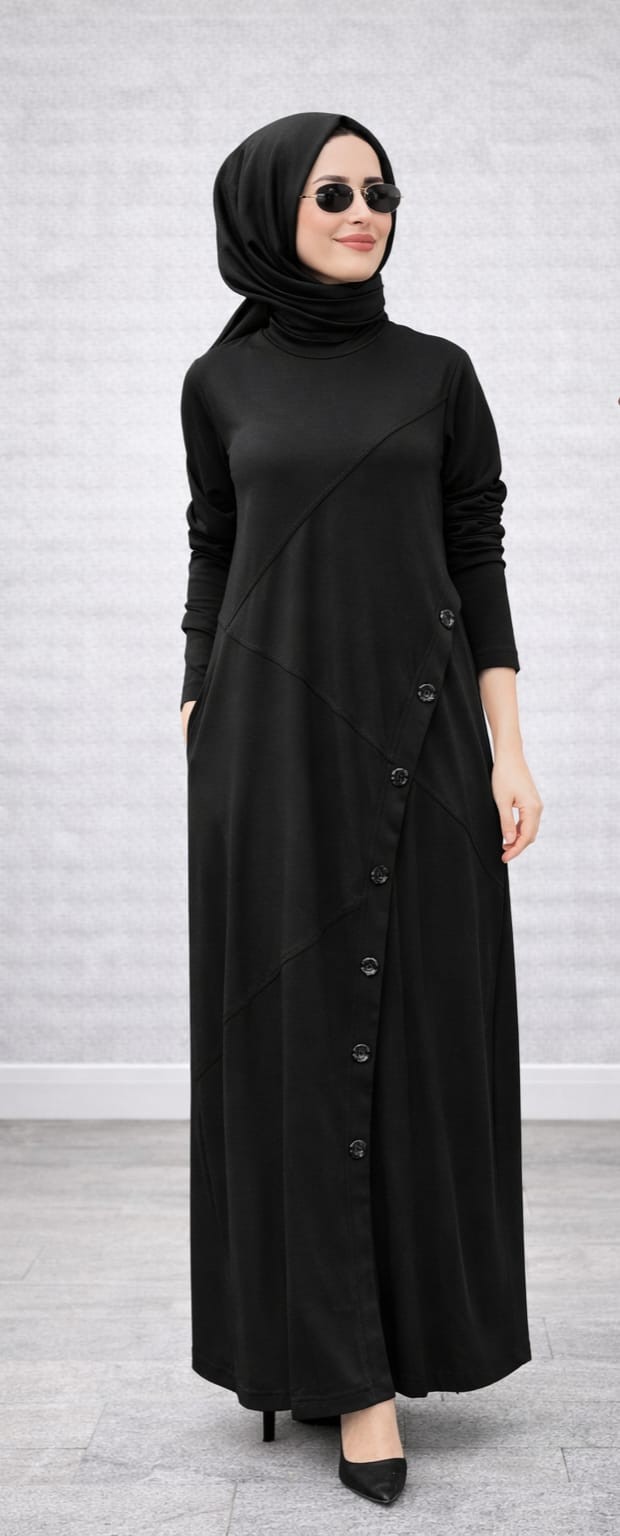 Nurcan Çetin 26131 Düğme Detaylı Tam Boy Elbise